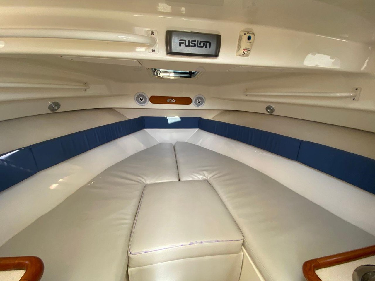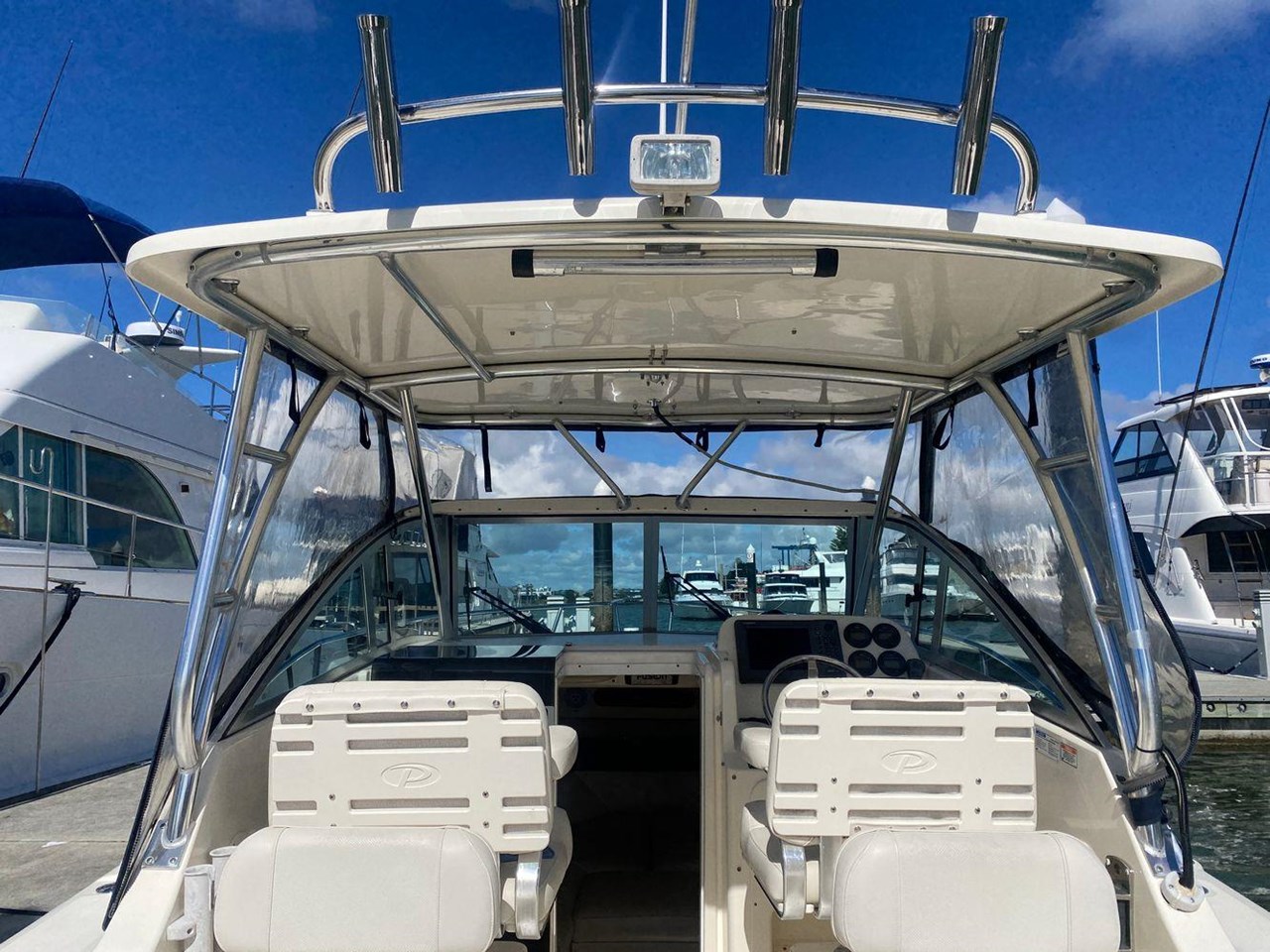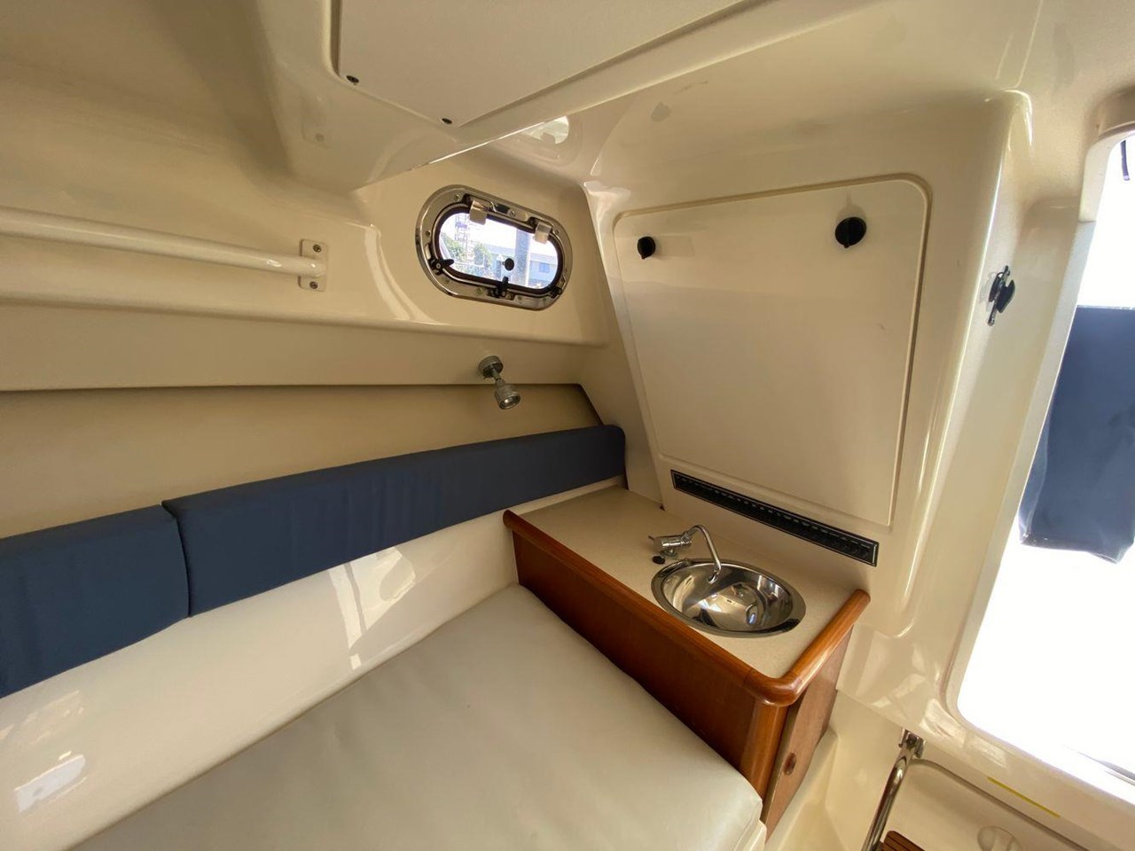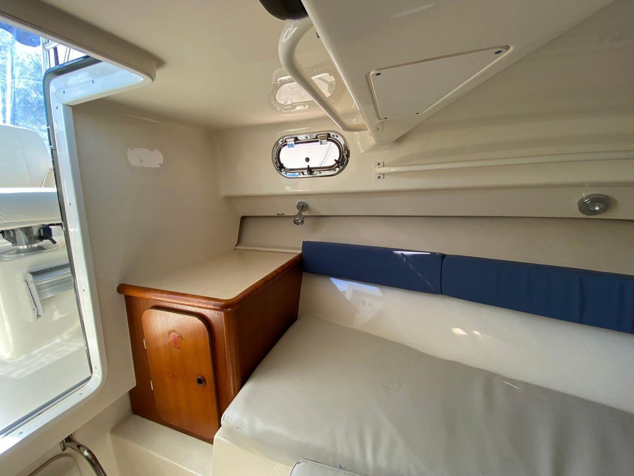 Powered by Twin Yamaha Fourstroke 150HP outboards with 562 hours on the clock. On Launching trailer (not road legal) Take advantage of this well-maintained, practical, twin-engine day boat, which is set up for a great day on the water for fishing. Featuring a clean and easy-to-move-around deck area, comfortable seating and shelter provided from both the clears and hard top, this boat is primed and ready for your next adventure. The hinged aft seat with fish box/coolbox, transom door, and bolsters around the deck make it a safe yet practical area. The forward cabin comfortably sleeps two. Opening port lights, interior lighting, a marine toilet, and a sink complete this area. Specifications: LOA w/ Pulpit: 8.31m Beam: 2.67m Draft (Motor Down): 0.71m Approx Dry Weight: 2,767kg Fuel Capacity: 492L Fresh Water Capacity: 75.7L Deadrise: 21 Degrees Ask about our competitive finance rates, we can tailor a package to suit most budgets to approved purchasers. Nationwide delivery is available. Sports Marine has over 100 boats for sale in Christchurch, Auckland & Sydney. We've been selling quality new & used boats for over 45 years. With over 8,000 boats sold, you can count on us for great deals and quality after-sales service & support. This boat is on display and ready for inspection now at Sports Marine Auckland. Twin Yamaha Four Stroke 150HP outboards Hard Top with Clears Lewmar Anchor Winch Transom gate Rod holders Bolsters Sink with freshwater Flip up aft seat with removable bin Furuno Radar VHF radio Fusion Sound System 75L Freshwater tank Head with holding tank Comfortable V-Berth