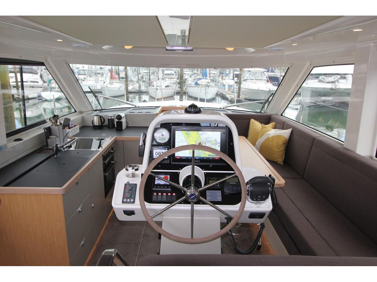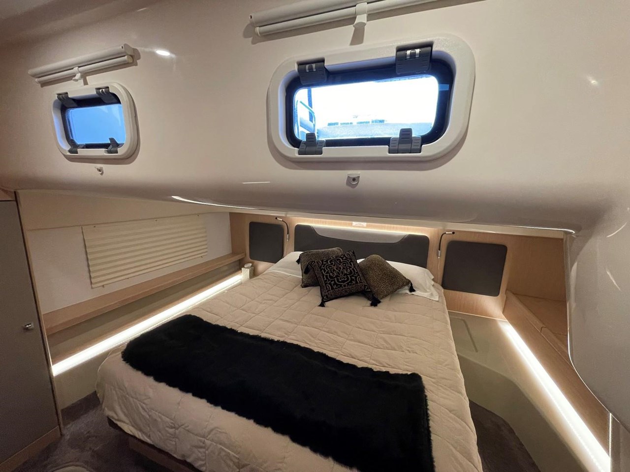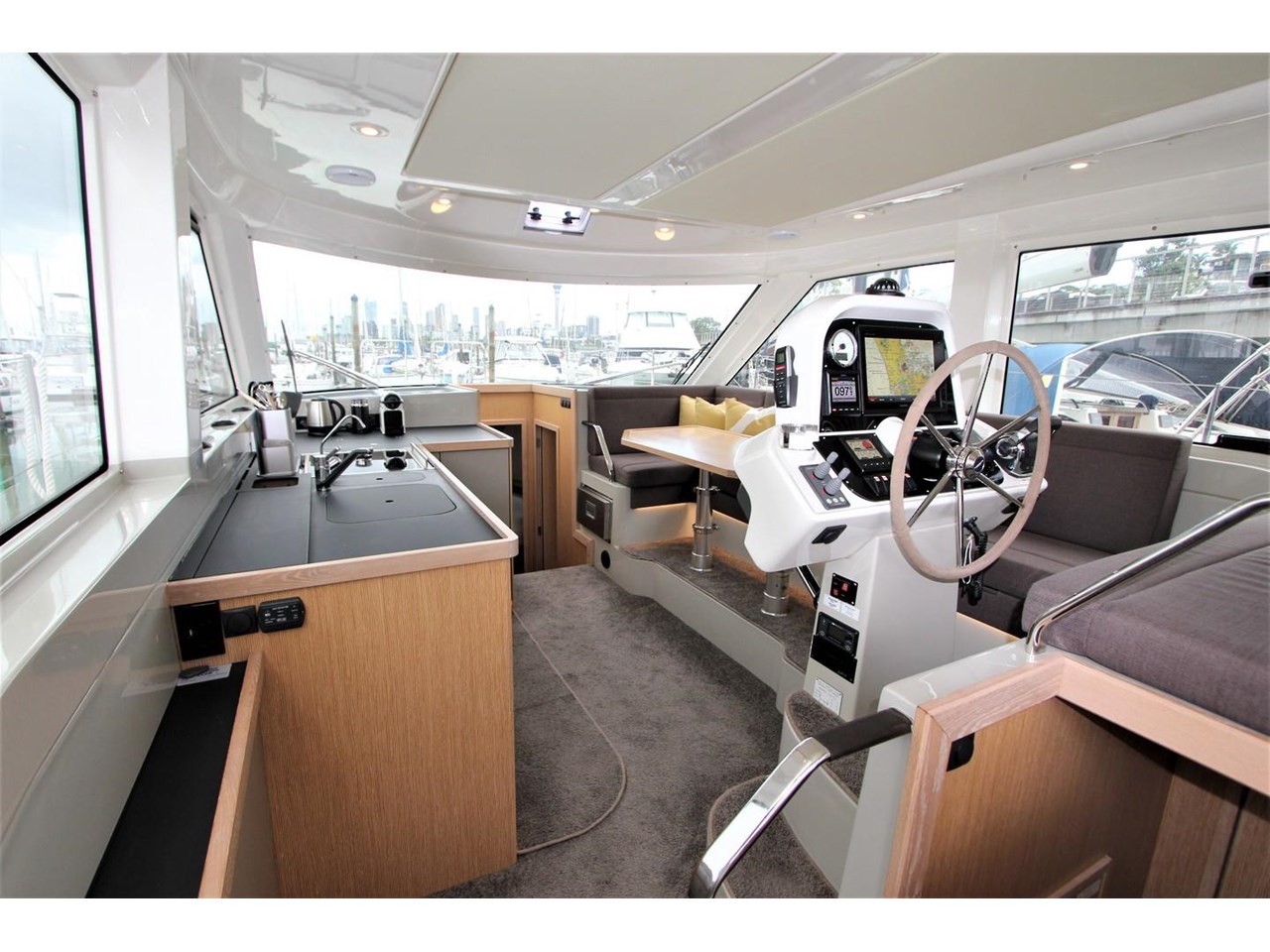 The 2018 Bavaria E40 Flybridge is a premium trawler-style semi-displacement powerboat offering exceptional space and comfort with its unique forward and aft master cabins. Measuring 13.6 metres in length, this highly specified vessel features dual helm stations including a flybridge for scenic cruising and a centreline helm below. Powered by a reliable Volvo D4 300 HP shaft drive engine, it delivers economical cruising at 10 knots and a top speed of 14 knots. Equipped with bow and stern thrusters, genset, water maker, and lithium batteries, the E40 is perfect for extended voyages. Its large fixed boarding platform enhances fishing and boarding convenience, making every journey as enjoyable as the destination. Discover the perfect blend of luxury, performance, and versatility with the Bavaria E40 Flybridge.