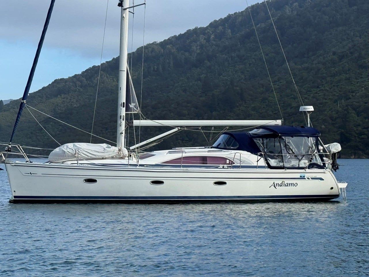 Rigged with a Seldon alloy fractional setup, in-mast furling main, roller furling headsail, and gennaker. Andiamo is turn-key and ready to sail!