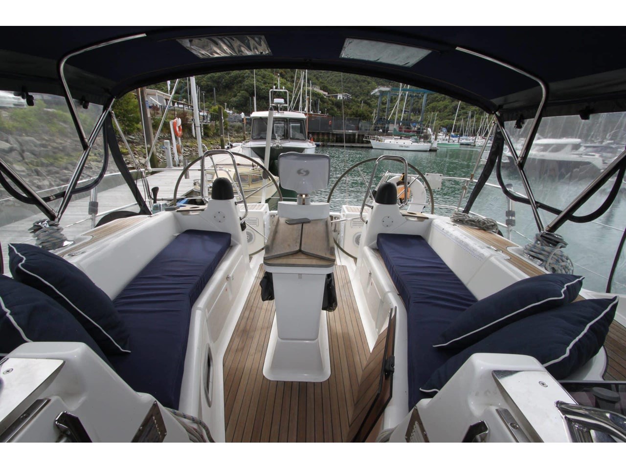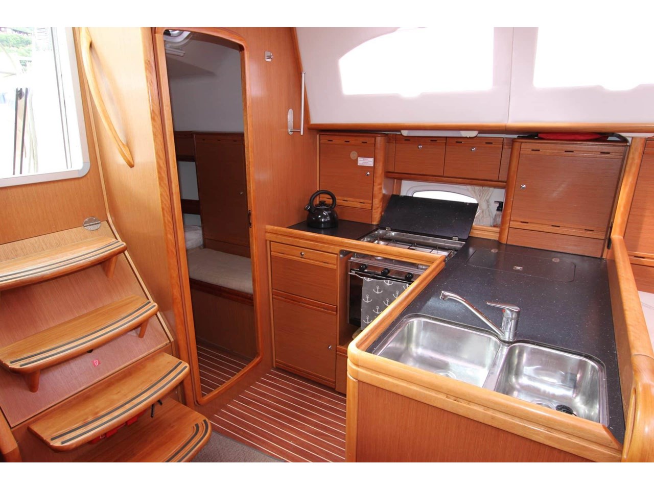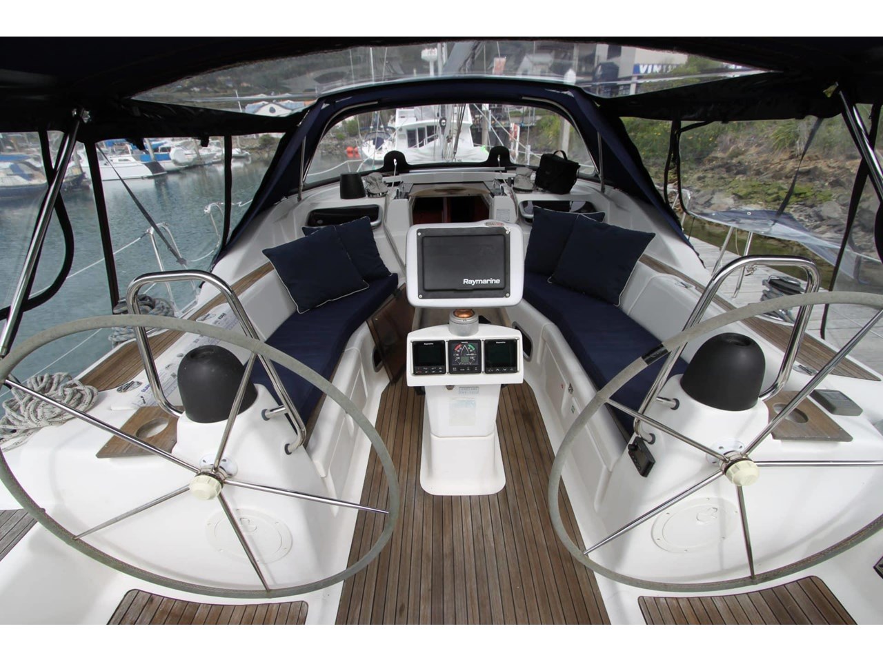2010 Bavaria Vision 40 - Powered by a 55hp Volvo Penta diesel engine with 1600 hours, recently serviced in September 2025. Featuring twin wheel steering, walk-through transom, teak cockpit with full covers, dodger, awning, and folding table. The transom lowers for easy boarding, with a 2.7m RIB stored on the foredeck.