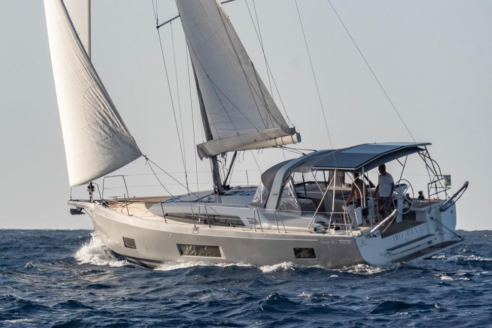 The Beneteau Oceanis 46.1 is a stunning 14.27-metre sailing yacht that perfectly balances elegance, spaciousness, and performance. Delivered new in 2021 and located in Tahiti, French Polynesia, this yacht is ideal for exploring the breathtaking lagoons and islands of the region. Featuring a stepped hull design, the Oceanis 46.1 offers exceptional interior volume without compromising on seakeeping capabilities. This particular vessel, named HIO ATEA, is a rare full-option owner's version equipped with premium factory upgrades including an upgraded 80hp Yanmar engine, bow thruster for effortless maneuvering, comprehensive air conditioning throughout cabins and saloon, a powerful ONAN 7.5kVa generator, and 1200W solar panels mounted on a robust stainless steel bracket. Additional features include a 60L/h watermaker operable on both 12V and 220V, full B&G electronics package with dual Zeus 7 displays, radar, AIS, and autohelm, as well as a family finish pack and upwind/downwind sail enhancements for superior sailing performance. The yacht boasts a full teak cockpit and deck, foldable davits, and a teak swimming platform for seamless water access. Fully equipped with up-to-date safety gear, HIO ATEA is ready for ocean crossings and offers unrestricted cruising in one of the world's most beautiful sailing grounds. This Oceanis 46.1 is a like-new opportunity to own a premium cruising yacht with unmatched comfort and style in French Polynesia.