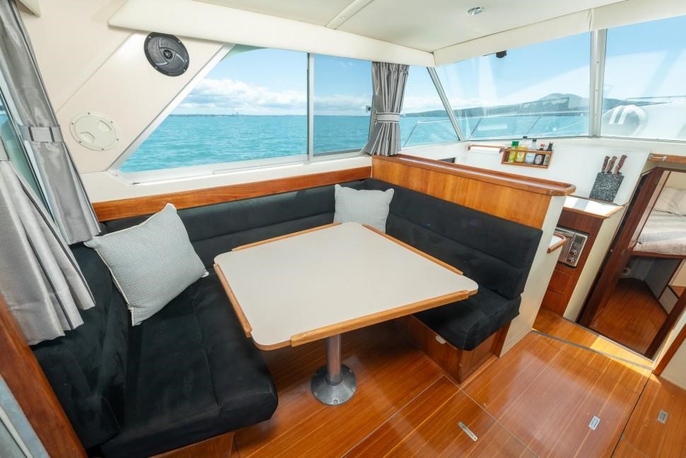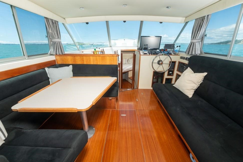 The Bertram Caribbean 35 is a legendary flybridge launch renowned for its solid construction, classic design, and exceptional sea-keeping capabilities, making it a top choice for New Zealand waters. Built in Australia under license from Bertram USA, this offshore performer features the iconic deep-V hull combined with a robust Caribbean build, delivering reliability and smooth performance. Powered by twin Caterpillar 3208TA diesel engines, it cruises comfortably at 20-22 knots with a top speed near 28 knots. The practical interior includes a forward master cabin, twin bunk guest cabin, a well-equipped galley, and a spacious saloon with convertible dinette and couch. The large cockpit is perfect for fishing, diving, or entertaining, with ample storage and safe swim platform access. Freshly anti-fouled and turnkey, this Bertram Caribbean 35 offers exceptional value as a tough, capable bluewater classic ready for your next adventure.