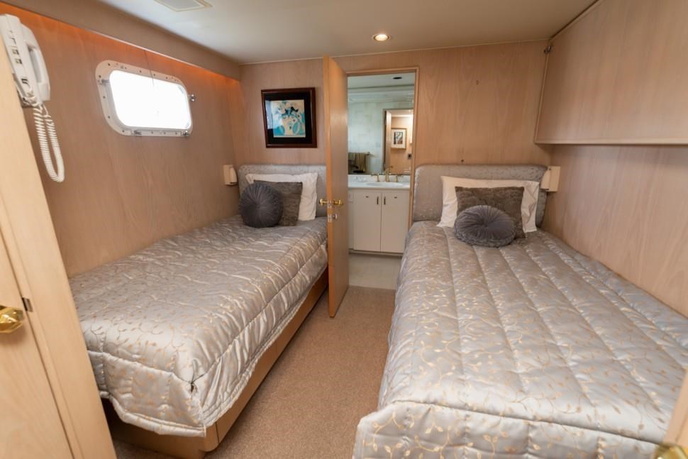 Discover the Broward 30.5, a classic and spacious bluewater motor yacht built in 1995, perfect for long-range cruising and adventure. Crafted in Florida, this fibreglass vessel features twin Detroit 12V92 engines with low hours since rebuild, offering a top speed of 21 knots and an impressive 3,000nm range with excellent fuel economy. Equipped with 27,000L fuel capacity, a watermaker, twin 35kW Kohler gensets, HVAC, bow thruster, and Naiad stabilisers, it ensures comfort and autonomy for extended voyages. The yacht boasts a custom hardtop, enclosed aft deck, refreshed flybridge, and a 5m tender with a 60hp Yamaha 4-stroke. Its elegant interior includes a large saloon with a sit-down bar, formal dining, fully equipped galley, and comfortable guest and crew quarters, making it ideal for family cruising or owner-operators. Ready to explore New Zealand, the South Pacific, or beyond, the Broward 30.5 combines style, performance, and reliability for your ultimate cruising experience.