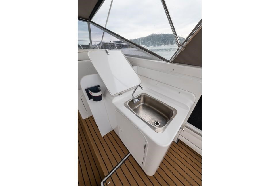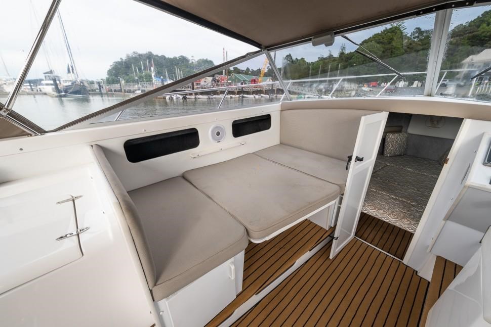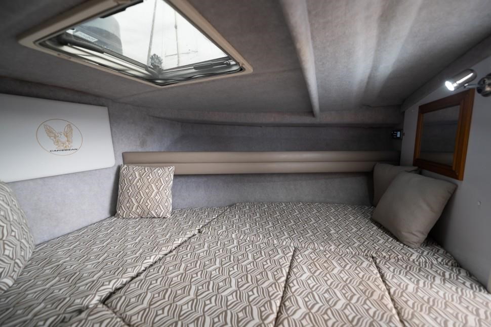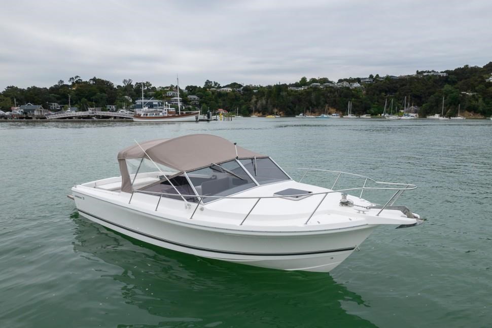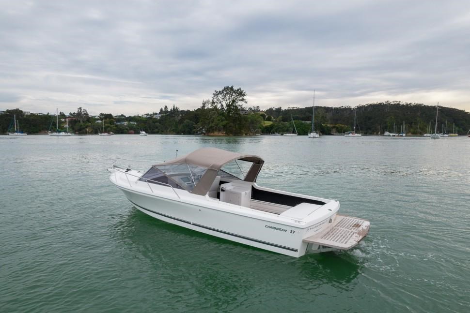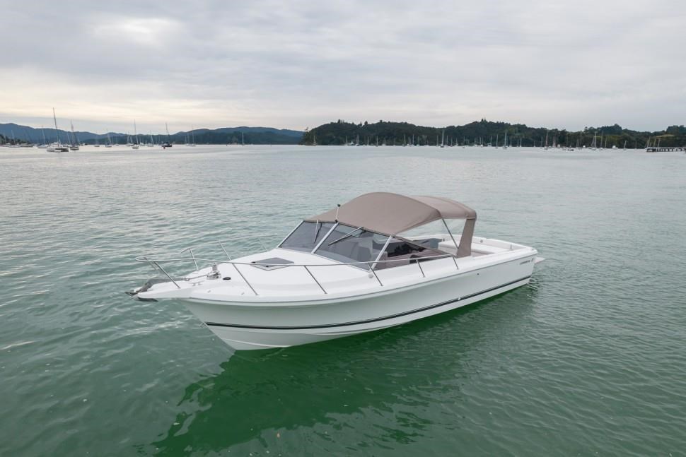 Discover the Caribbean 27, a refined and versatile power trailer boat perfect for Kiwi boating adventures. Featuring upgraded luxurious internal finishes with warm fabrics and teak-look pop-in carpet, this 8.23-metre fibreglass vessel offers a spacious cabin with a generous V-berth and pump-out toilet, ideal for overnight stays. Powered by efficient 2024 Twin Volvo Penta 280 V6 engines with only 40 hours, it delivers exceptional fuel economy, torque, and balance. The open cockpit design maximizes space and social interaction with a convertible dinette, ample storage, and a commanding helm view. Ideal as a coastal day boat, the Caribbean 27 combines style, comfort, and performance for an unbeatable boating experience in the Bay of Islands and beyond.