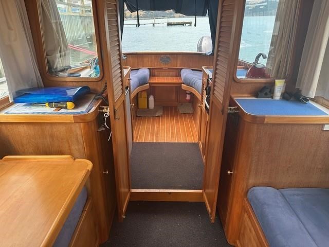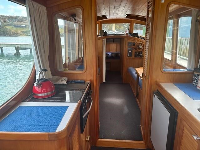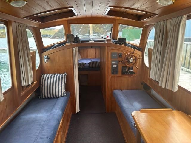 Powered by low hours Lombardini diesel and with the addition of bilge keels and steadying sail for comfortable cruising. Classic GRP launch with the addition of mast and steadying sail. Auto Pilot, Depth Sounder, VHF Radio. Bilge Pump, 3 x inflatable life jackets, 4 x Burner stove with Grill and Oven