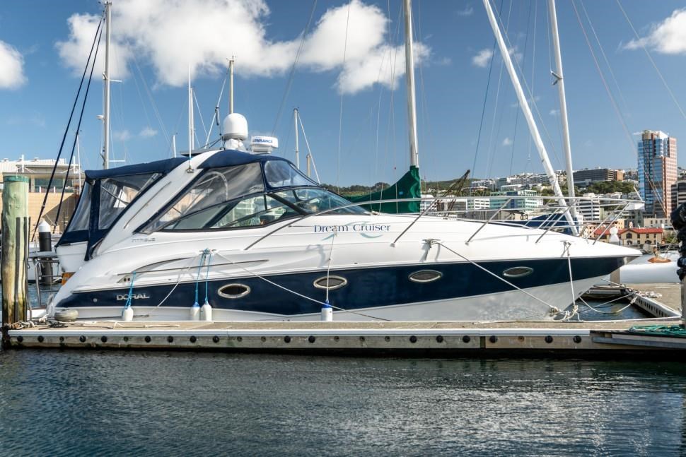 Discover the thrill of cruising with the 2008 Doral 10.8m 'Dreamcruiser,' a superb all-GRP powerboat designed for both exhilarating day trips and comfortable extended voyages. Powered by twin 260HP Volvo Penta engines with superchargers and duo prop stern legs, this vessel delivers an efficient cruise speed of 20 knots and a top speed of 30 knots. Its spacious, contemporary interior comfortably accommodates up to five guests, featuring ample headroom, extensive storage, a holding tank, and large capacity water and fuel tanks. Renowned for exceptional handling and excellent helm visibility, especially in challenging Wellington harbour conditions, 'Dreamcruiser' offers precise twin-engine maneuverability for effortless docking and navigation. Meticulously maintained with regular engine servicing and currently berthed in Wellington, this low-maintenance cruiser is ready for immediate adventure. Don't miss this opportunity to own a versatile and reliable Doral cruiser. Contact George today for a private viewing or full inventory details.