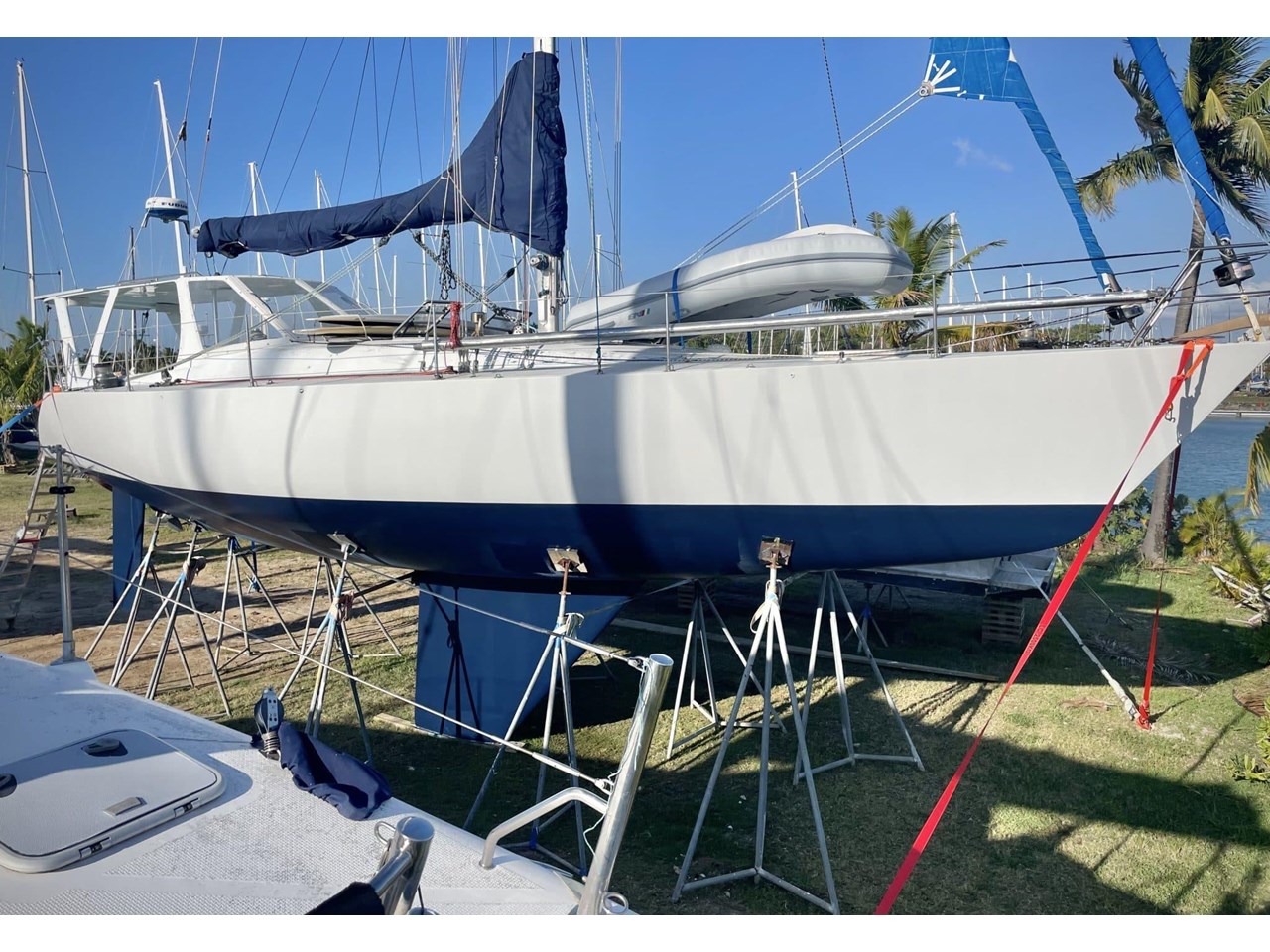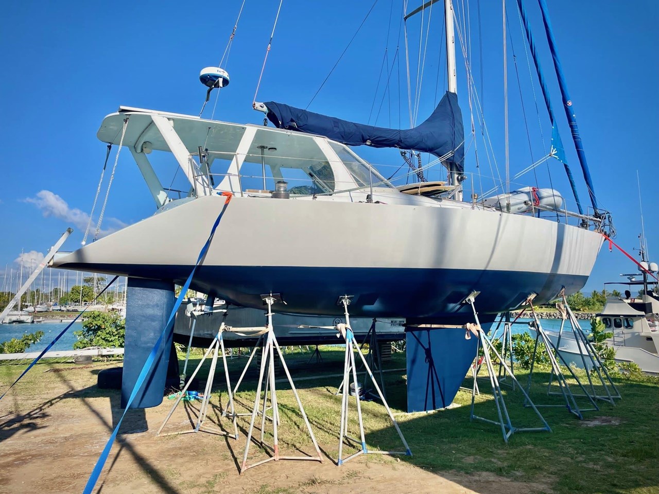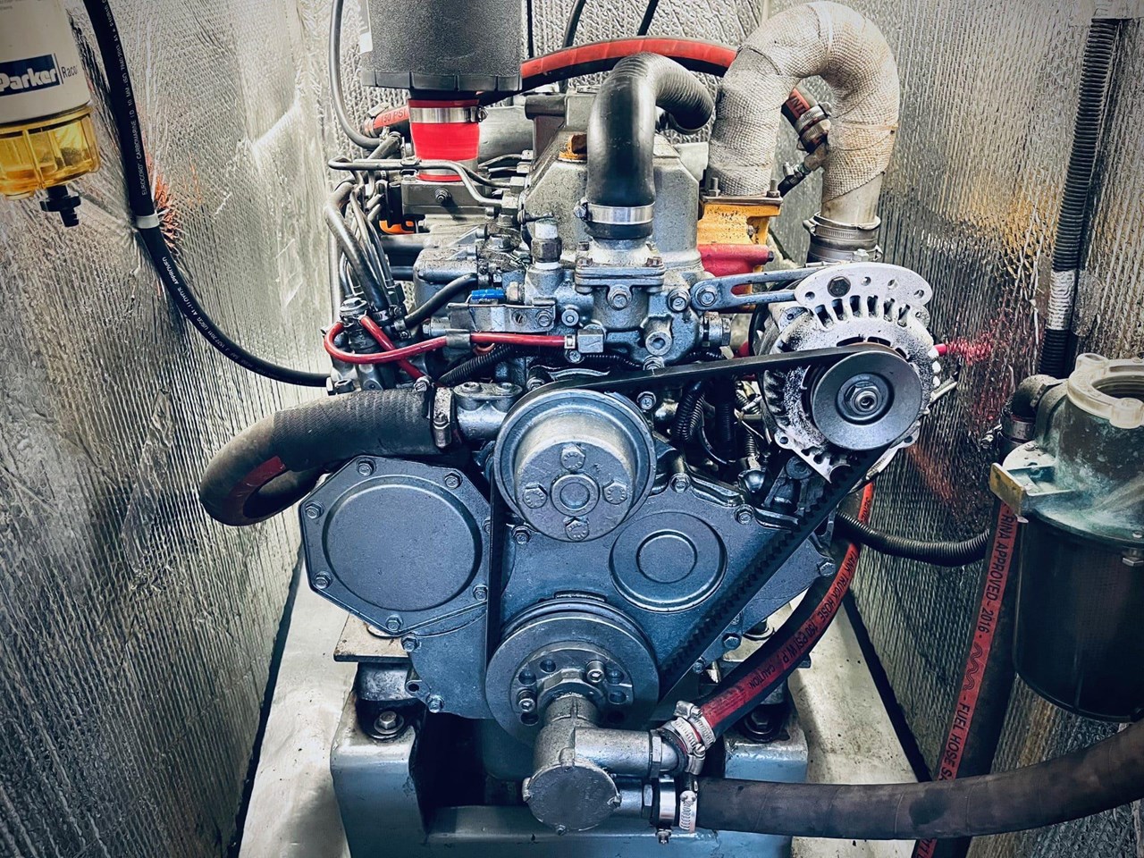 Panterra is powered by a Yanmar 68hp engine. Sails include a 2021 fully battened Mainsail, 2021 furling Staysail/Jib, 2023 furling Genoa, and an Assym Spinnaker in sock.