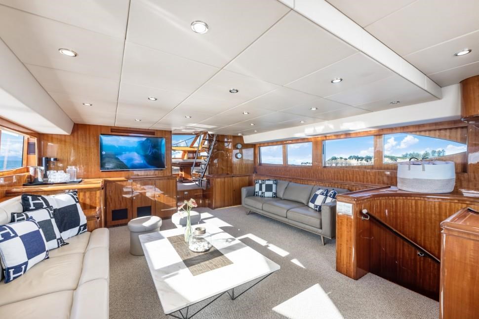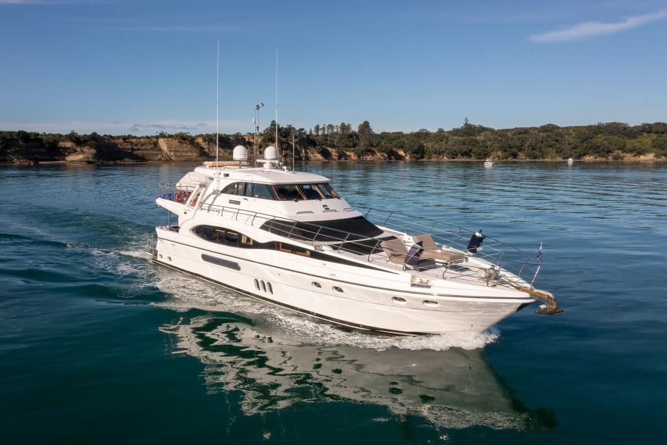 Experience luxury and performance with the 2008 Dyna Laguna 77, a prestigious 77ft power yacht renowned for its exceptional design and build quality. Perfect for private escapes, stylish entertainment, or a lucrative charter business, this vessel features an open-plan layout with a luminous full-beam master suite and five beautifully appointed cabins accommodating 12 guests. Equipped with twin MTU V10 engines, MagnusMaster stabilisers, bow and stern thrusters, and a comprehensive Raymarine electronics suite, the Dyna Laguna 77 offers impressive speed, comfort, and confidence for extended voyages. Additional amenities include two Onan generators, a 300L/h water maker, commercial ice maker, and a 5,000L fuel capacity. Meticulously maintained with a recent out-of-water survey, this yacht is a statement of success and adventure, ready to elevate your boating experience in Auckland and beyond.
