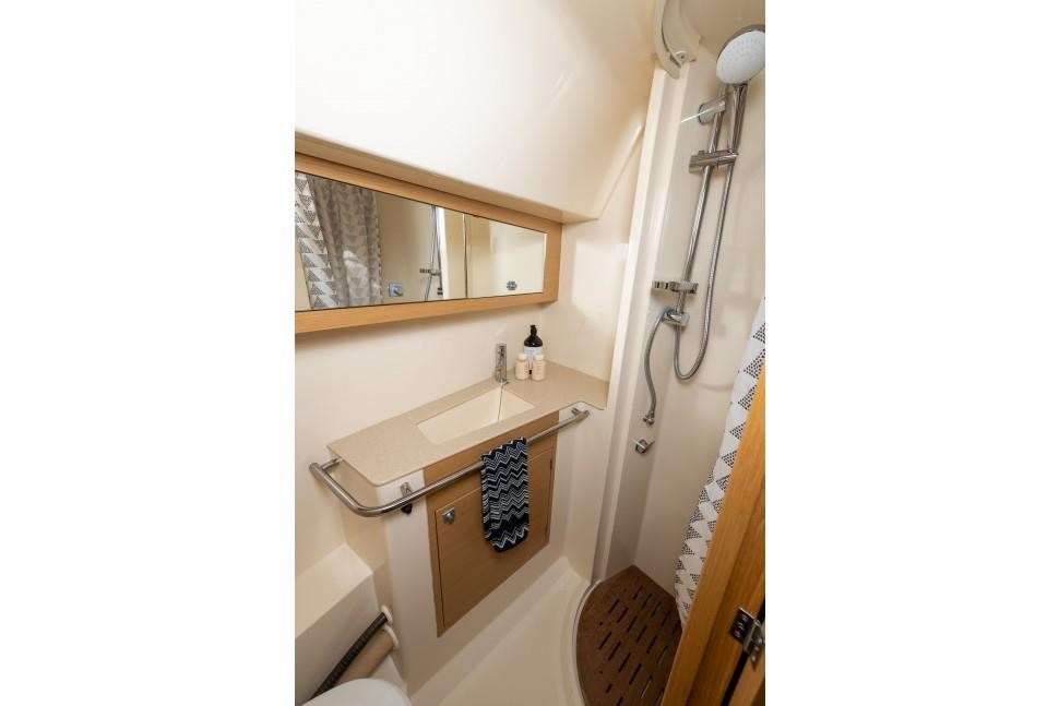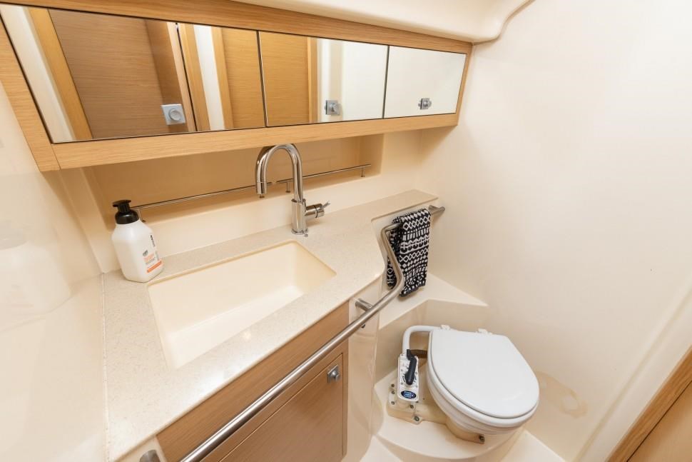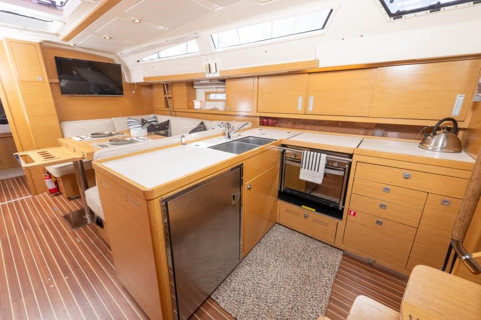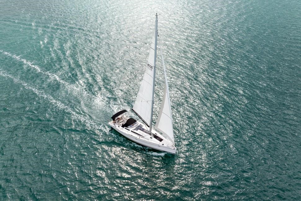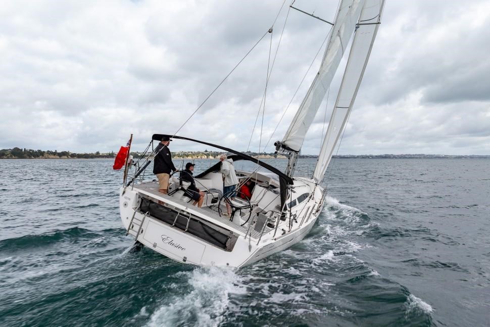 The 2013 Elan 450 Performance, known as Elusive, is a high-performance cruising yacht designed by Humphreys Yacht Design and built to Elan's exacting standards. This fibreglass sailboat measures 13.72 metres and features an upgraded performance keel for enhanced stiffness and superior pointing ability, ideal for both offshore passagemaking and competitive club racing. Equipped with twin electric halyard winches, twin wheels, and twin rudders, it offers excellent control and balance for short-handed sailing. The spacious interior boasts a bright, light timber finish with large hull windows and deck hatches, providing ample natural light. The three-cabin layout includes a luxurious forward owner's cabin with an island double berth and private ensuite, plus two roomy aft cabins served by a second head, perfect for family or friends. On deck, the large cockpit with ample seating and a fold-down transom swim platform enhances comfort and convenience. Additional features include a versatile sail wardrobe for all weather conditions, deep storage lockers, and diesel heating for extended sailing seasons. This well-maintained and thoughtfully upgraded yacht combines speed, comfort, safety, and style, making it an exceptional choice for coastal cruising, offshore adventures, or racing enthusiasts.