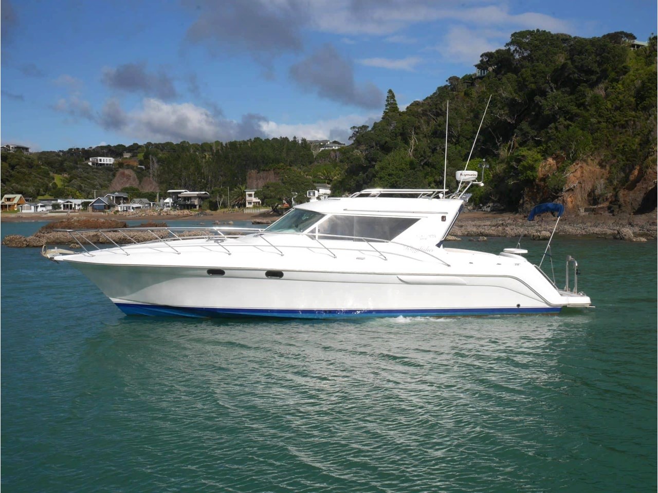 Launched in 2001, this Kingfisher powerboat features GRP construction and is powered by twin 280 hp Volvo Penta diesel engines, offering a cruising speed between 26 and 30 knots. Currently operated by a dive business in Whangarei, the vessel has benefited from consistent professional maintenance, with service records available to view.