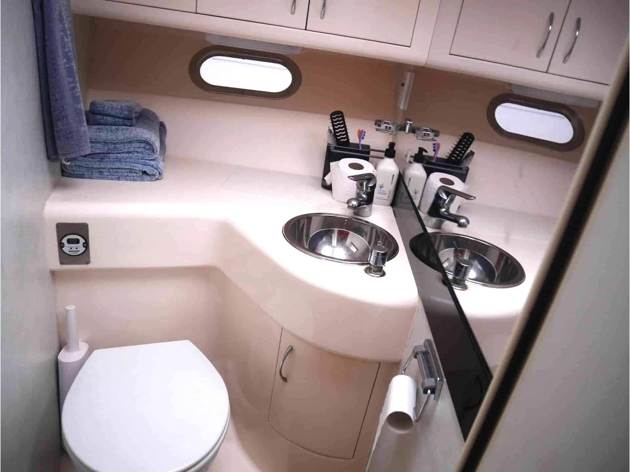 The interior layout provides full headroom and includes two spacious double cabins, making it suitable for both leisure cruising and overnight stays. Onboard amenities include automatic anchoring, a built-in BBQ, Lectrasan toilet system, and a Sonihull Ultrasonic antifoul system for efficient hull protection.