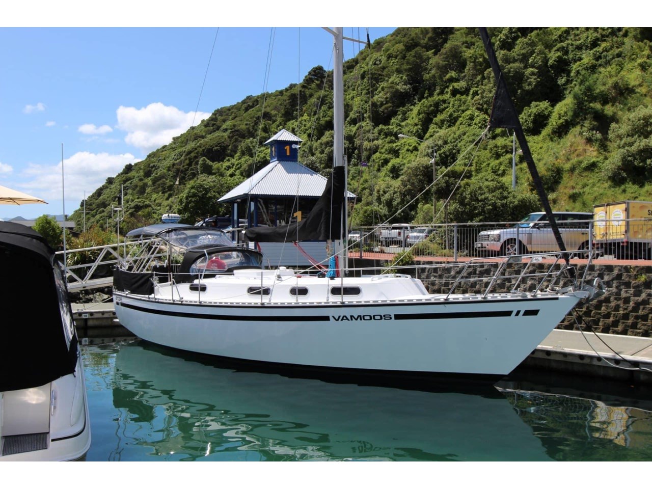 Hartley Reality 11.35m. Launched 1979. Well built, big volume, well presented, capable cruising yacht. Sought after Picton Yacht Marina Berth (Outside of Coat Hanger Bridge $646 per month), Raymarine Sounder/Chartplotter (9") Radar, 2 x Lifebuoy's 4 x Lifejackets Safety Harness, Bilge Pumps Gas Solenoid Switch, Compass VHF Radio, Electric Capstan (new 2020), Spray Dodger, Fridge, Bilge Pumps, Auto Pilot, Shore Power, Gas Stove, 3 x Batteries ( 2020).