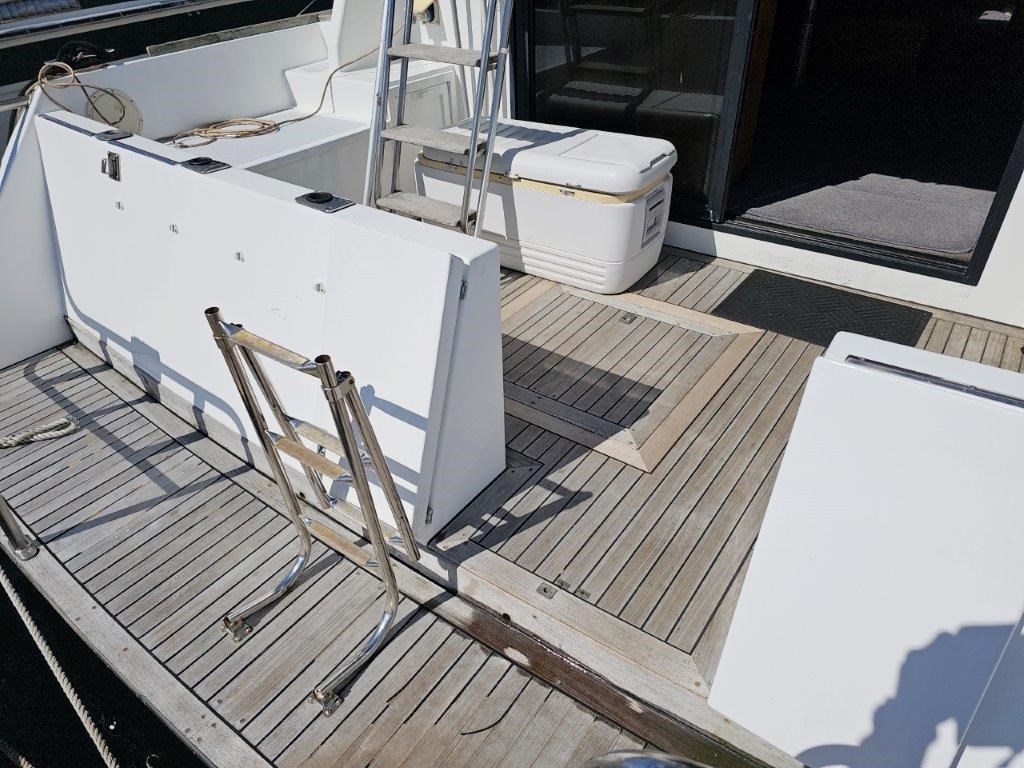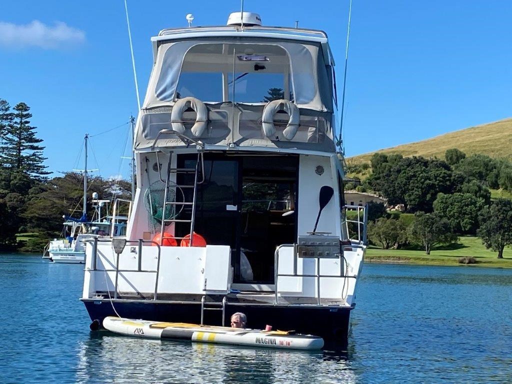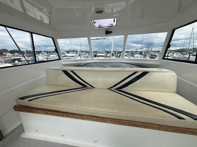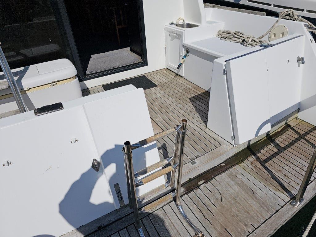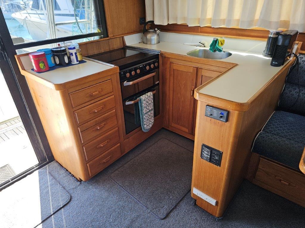 The Kennedy 11m (1995) is a robust and spacious timber-hulled powerboat built by the Wooden Boat Company, featuring a triple diagonal Kauri glassed over construction. Powered by twin Cummins 6BT 210hp diesel engines with shaft drive, it offers a comfortable cruising speed of 12 knots and a top speed of 21 knots. This vessel boasts a generous 11.3m length overall and a 3.9m beam, providing ample space with two cabins including a master cabin with a double bed and a forward cabin with four bunk beds. The modern enclosed flybridge is equipped with advanced navigation electronics such as Raymarine Axiom, autopilot, and VHF radio. Additional amenities include a large dinette, aft galley with gas hob, grill, and oven, stainless steel tanks for fuel and freshwater, a lithium-ion house battery bank with Victron inverter charger, and a teak cockpit with swim platform. Ideal for those seeking a big volume twin cabin boat with modern features and excellent value, the Kennedy 11m is perfect for comfortable cruising and extended stays on the water.