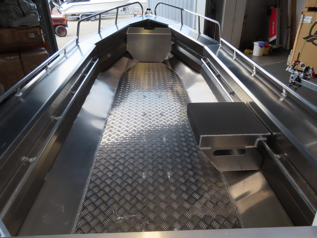 Anchor bulk head.... Battery Mount.... Bow Rails.... Gunnel Outside Rails.... Self Draining Bungs.... Single removable seat.... Internal hand rails .... Transom Tie Down Points.... Anchor fair lead.... Cleats x 3....