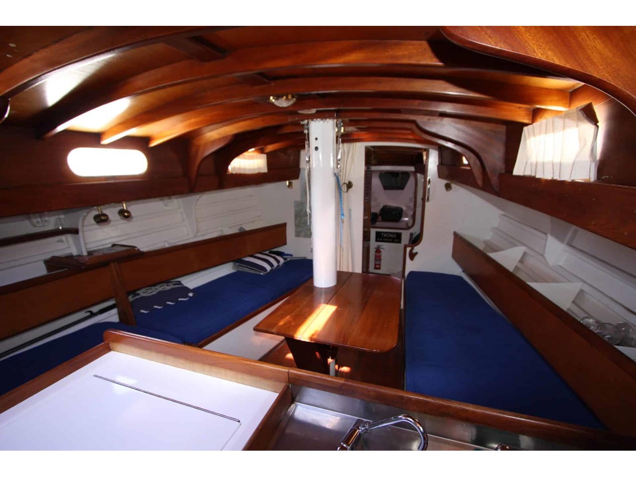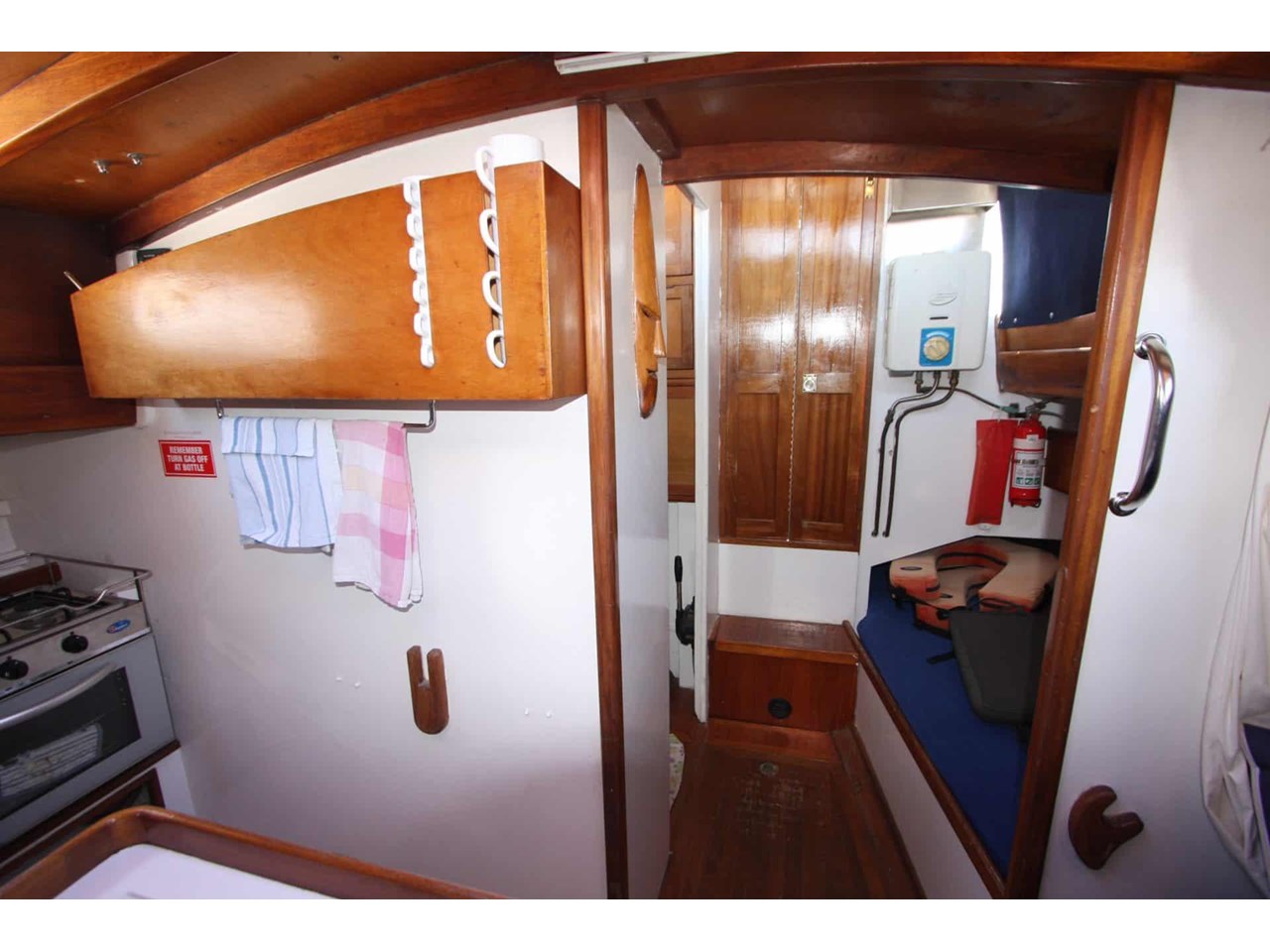 Navigation and electronics include a Garmin GPS, depth sounder, and wind instruments. She's equipped with a diesel cabin heater, gas Califont with cockpit shower, chart table and charts. Rigging was replaced in 2006, she carries a Reefrite roller headsail, mainsail bag with lazy jacks, and a basic sail wardrobe.