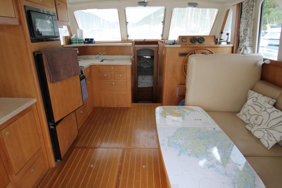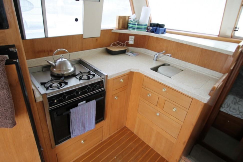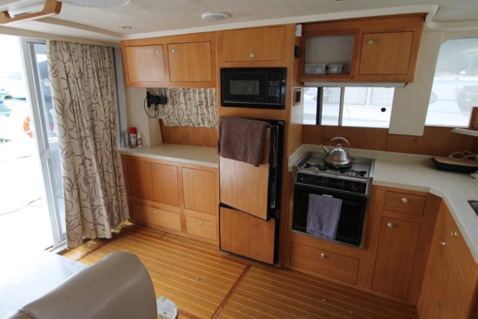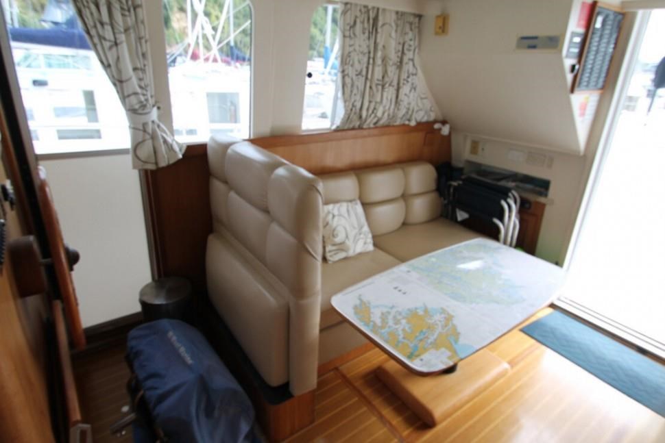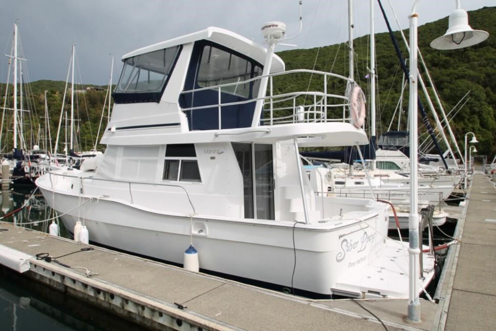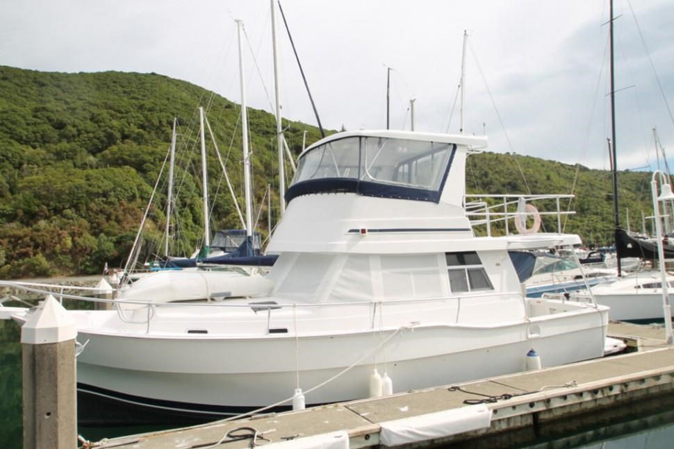 The Mainship 390 "Silver Lining" is a superbly practical and easy-to-operate power cruiser, ideal for both novice and experienced mariners. Powered by a reliable shaft-driven Caterpillar diesel engine, it delivers an economical cruising speed of 9 knots with the ability to reach 14 knots when needed. Designed with safety and comfort in mind, this fibreglass vessel features a helm-side door, dual-station steering, bow thruster, and spacious walk-around decks, ensuring secure and enjoyable boating. The luxurious accommodation includes a large forward owner's cabin with a walk-around double berth and ensuite, plus a cozy twin cabin to port for guests. The expansive covered flybridge, accessible via a secure companionway from the generous cockpit, provides ample space for relaxation and entertainment. Equipped with a comprehensive Raymarine electronics suite and accompanied by a dinghy with outboard, "Silver Lining" offers versatility for exploring remote locations. Additionally, the option to purchase or rent the current berth at the sought-after Picton Marina adds exceptional value. Experience comfort, functionality, and performance combined in this outstanding Mainship 390.