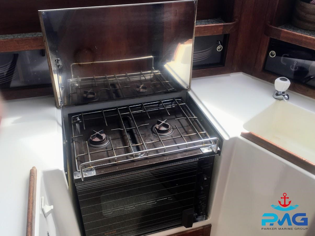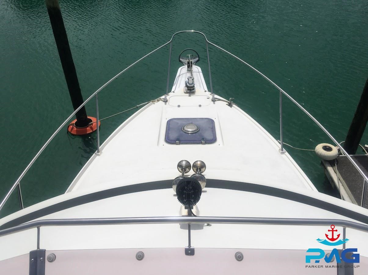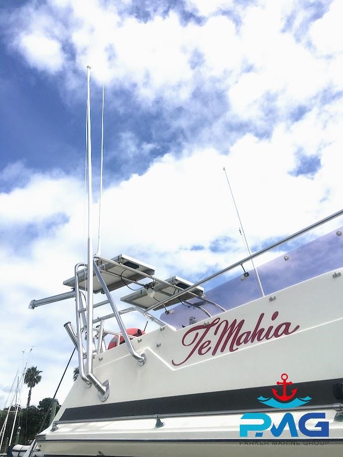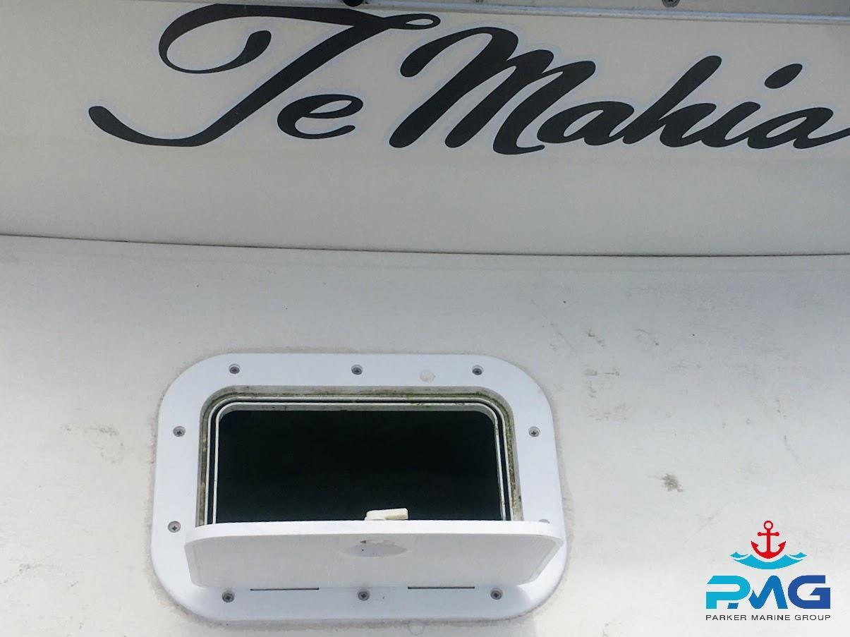 - Custom fabricated slewing Dinghy davits (above Cockpit), ideal for long trips or maximizing duckboard space.