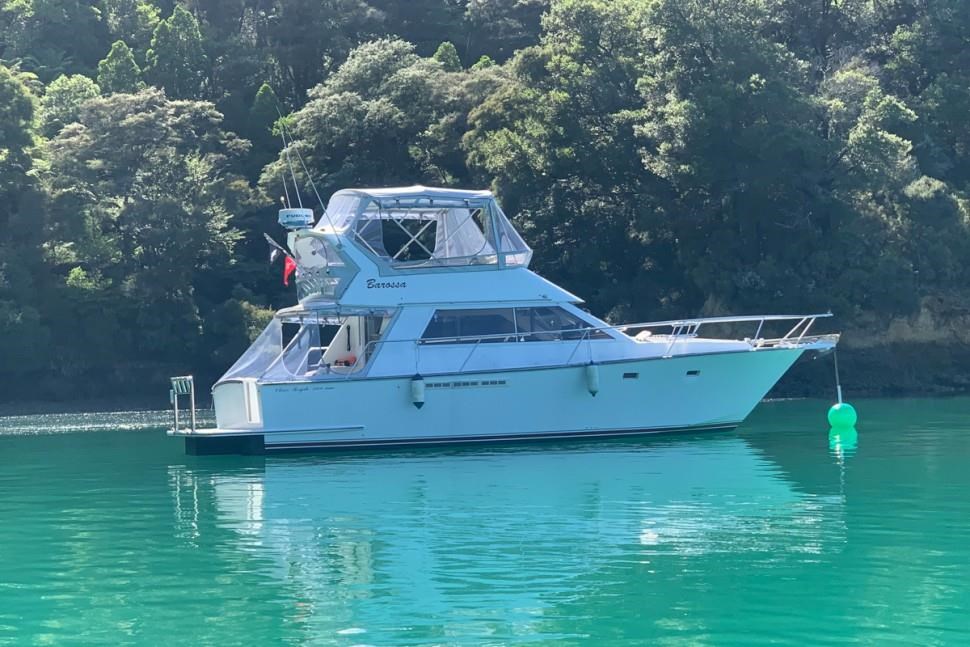Discover the Oliver Royale 3600, a classic New Zealand-built powerboat renowned for its exceptional craftsmanship, comfort, and performance. This beautifully maintained vessel, known as 'Barossa', offers spacious accommodation with two cabins sleeping up to 8 people, including a master cabin with ample storage and a double berth cabin ideal for guests or family. The expansive saloon and large aft door open to a generous cockpit perfect for fishing, lounging, or alfresco dining, seamlessly blending indoor and outdoor living. Enjoy panoramic views from the huge flybridge, ideal for entertaining or relaxing. Powered by a reliable Cummins 6BTA diesel engine delivering around 335hp, the Oliver Royale 3600 cruises efficiently at 11-15 knots. Perfect for family cruising or entertaining, this vessel combines timeless design with practical features, making it a standout choice for boating enthusiasts. Located at Havelock marina, this is a rare opportunity to own a piece of New Zealand boating heritage.