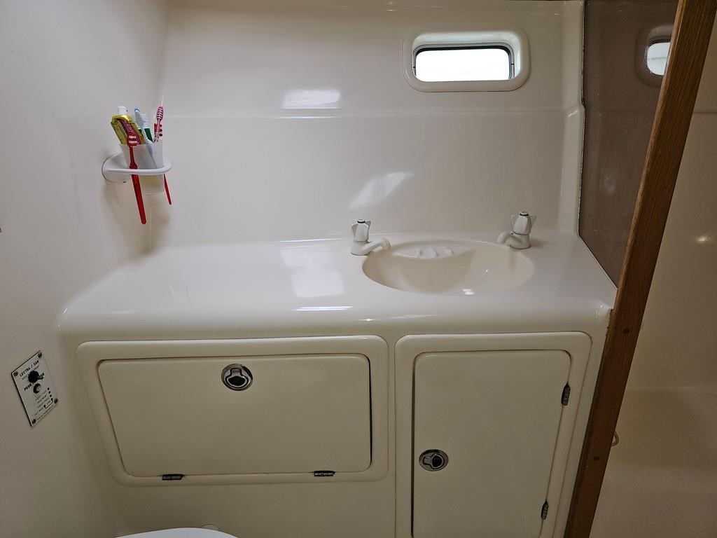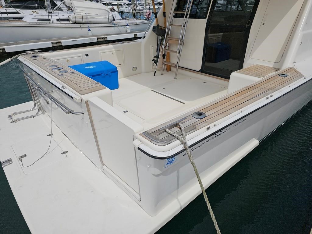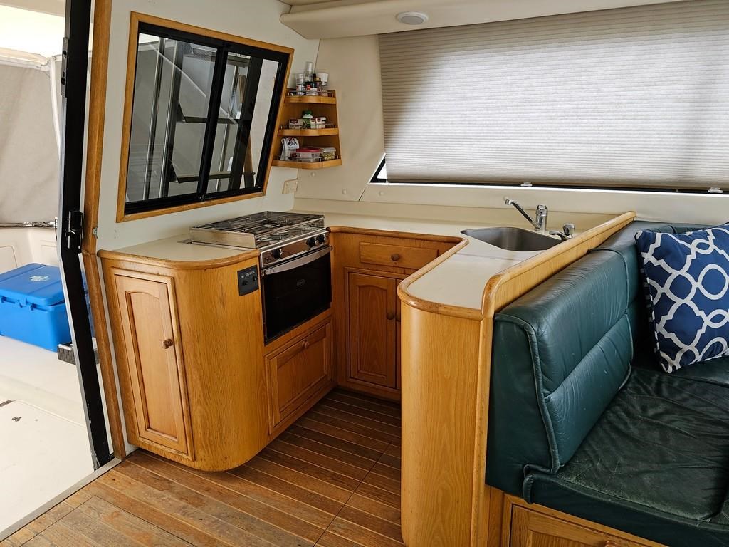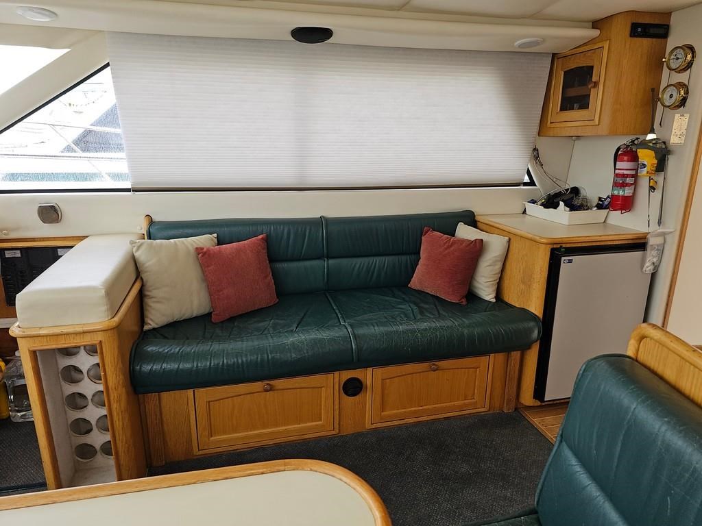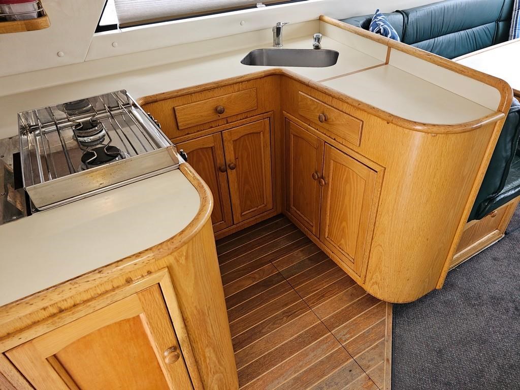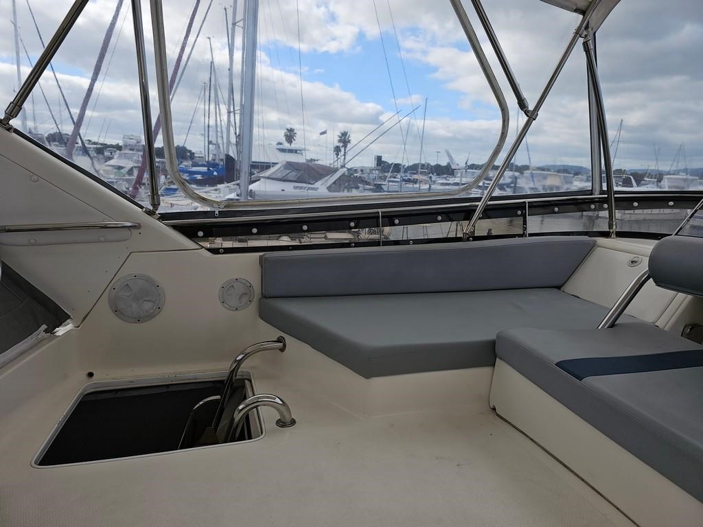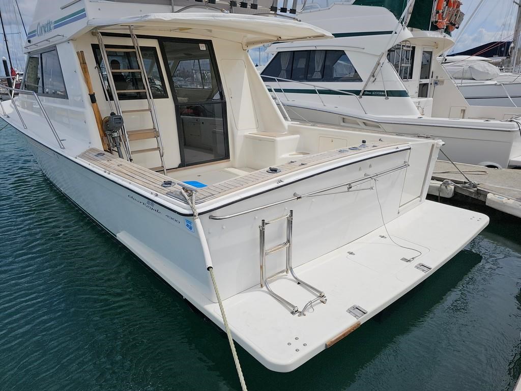 The Oliver Royale 4300 (1997) is a spacious and well-equipped 13.2m fibreglass powerboat, perfect for comfortable cruising. Powered by twin Cummins 315hp diesel engines with shaft drive, it offers a smooth and efficient ride with a cruising speed of 15 knots and a top speed of 26 knots. The vessel features a robust GRP construction, a 4.1m beam, and a shallow 1.1m draft, making it versatile for various waters. Accommodation includes two cabins with a master double bed and forward V-berth bunks, plus a lock-up shower and toilet. The saloon boasts leather seating and a pull-out couch, while the aft galley is equipped with a 2-burner gas hob, oven, and fridge. Navigation is enhanced with Simrad and Furuno displays, autopilot, and digital controls at both lower helm and flybridge stations. Additional amenities include an Eberspacher diesel heater, large cockpit with teak combings, live bait tank, freezer, and dinghy holder. With recent engine servicing and upgrades, this Oliver Royale 4300 represents excellent value and readiness for immediate use. Contact Tauranga Boat Sales for viewing and more information.