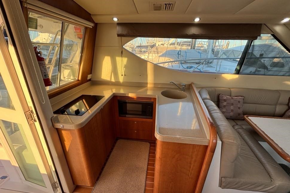 Discover the 2006 Oliver Royale 390, a premium 11.89-metre fibreglass flybridge sportfisher designed for offshore cruising and serious game fishing. Powered by twin Cummins QSB5.9 380hp engines, this vessel delivers exceptional torque and performance with cruising speeds of 18 knots and bursts up to 26 knots. Equipped with advanced Raymarine Axiom multifunction displays, autopilot, and wind indicators, it offers superior navigation and fish-finding capabilities. The onboard Onan 7.5kW generator ensures off-grid comfort powering air conditioning, appliances, and entertainment systems. Perfect for tournament fishing or coastal cruising with family and guests, the Oliver Royale 390 combines luxury, reliability, and rugged fishing prowess. Available now at Tauranga Sulphur Point Marina with a 16m berth, this turnkey vessel is competitively priced for a quick sale. Don't miss the chance to own this exceptional offshore cruiser and fishing machine.