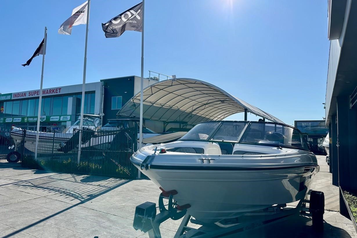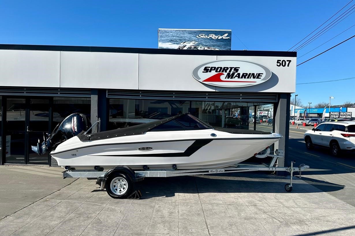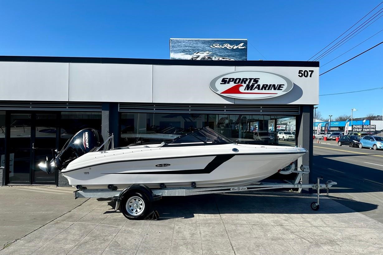 Powered by a Mercury 150HP Four Stroke engine. Enhance your boating experience with incredible discounts on a new Rae Line vessel. Whether you're a seasoned boater or a newcomer eager to learn, our exceptional selection of Rae Line boats guarantees unparalleled adventures on the water. If you're in the market for an affordable, yet state-of-the-art bowrider, look no further than the Rae Line 185. Powered by a Mercury 150hp Four Stroke engine. Based on the award-winning Sea Ray hull, this brand new Rae Line 185 outboard bowrider comes to you on a fully galvanized trailer and is powered by an exhilarating, new Mercury 150hp Four Stroke engine. Classic timeless design and styling mean this Rae Line will look great in years to come. The 185 is an easy-to-manage family boat. Rae Line continues to redefine American-style GRP sport boats for the New Zealand and Australian markets. Options Included: Outboard Engine Upgrade White Hull and Black Stripe SeaDek Flooring Stainless Steel Custom Ski Pole Stainless Steel Insert Rubrail Sliding Starboard Seat Port Back to Back Seat Cockpit Covers w/ Bungee Cords GPS Speedo Hull & Deck Features: Brass threaded garboard drain plug (bung) Stainless steel 3-step ladder PVC rub rail with vinyl insert Stainless steel bow and stern eyes Foam-filled, positively buoyant hull Fairlead and bollard Bow anchor storage Bow seat storage Six drink holders Colour co-ordinated soft-touch dash & glovebox Cockpit lower panel storage Platinum steering wheel Five grab handles Under-floor ski storage locker Marine-grade upholstery vinyl & thread Moulded aft seating with backrest bolsters Moulded bow seating with wrap-around bolsters Technical Features: Fuel & voltmeter gauges Speedometer Tachometer Horn Navigation & anchor lights Engine Alarm (oil & water) Roto-molded fuel tank 99L USCG standard A-1 fuel lines Shift & throttle lever with trim switch & ignition cut-out switch Limited lifetime structural hull warranty 3+3 Engine Warranty All fibreglass construction Ask about our competitive finance rates, we can tailor a package to suit most budgets to approved purchasers. Nationwide delivery available. Sports Marine have over 100 boats for sale in Christchurch, Auckland & Sydney. We've been selling quality new & used boats for over 45 years. With over 8,000 boats sold, you can count on us for great deals and quality after-sales service & support. This boat is on display and ready for inspection now at Sports Marine Christchurch
