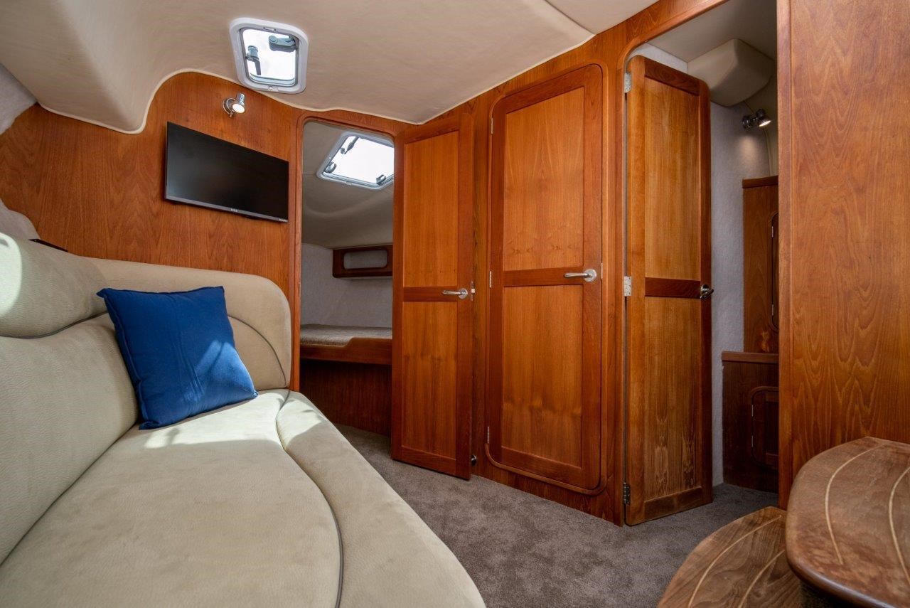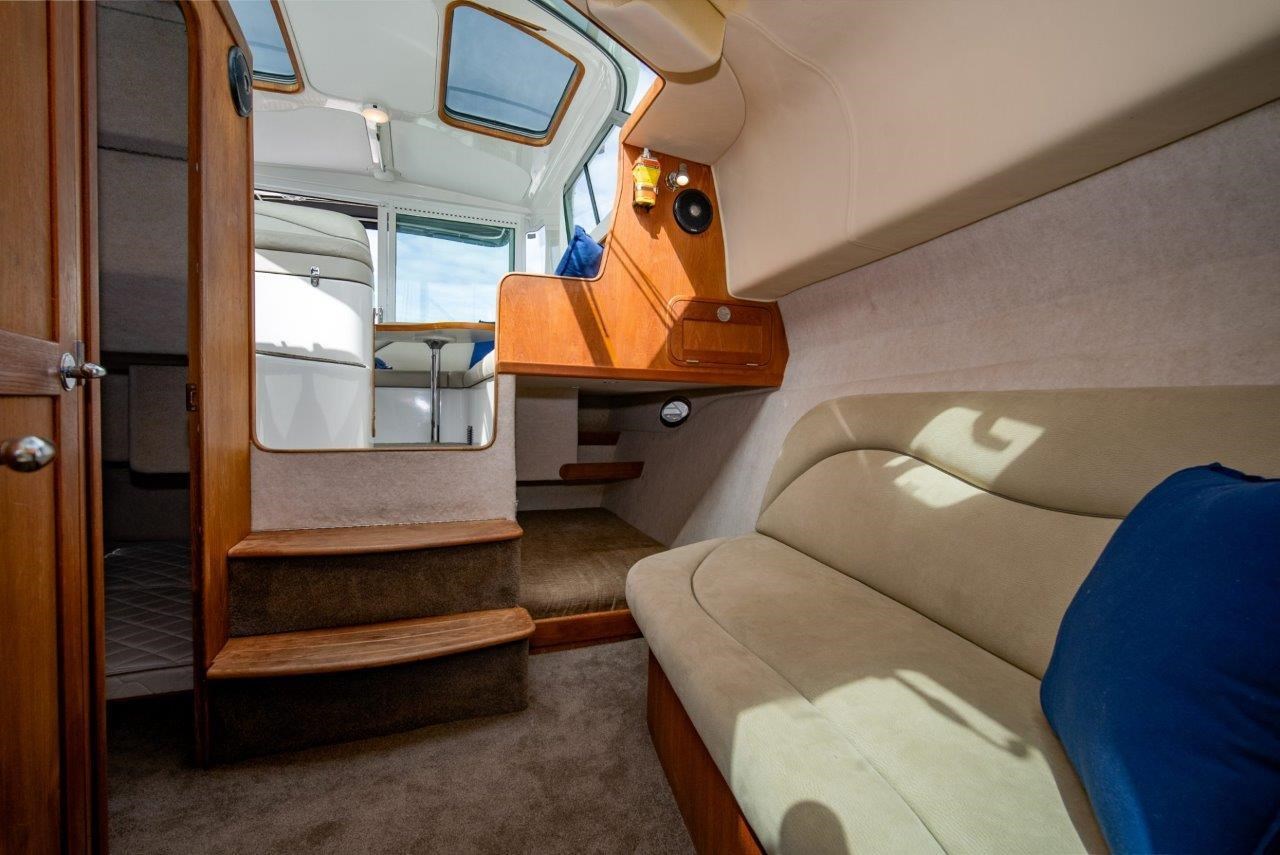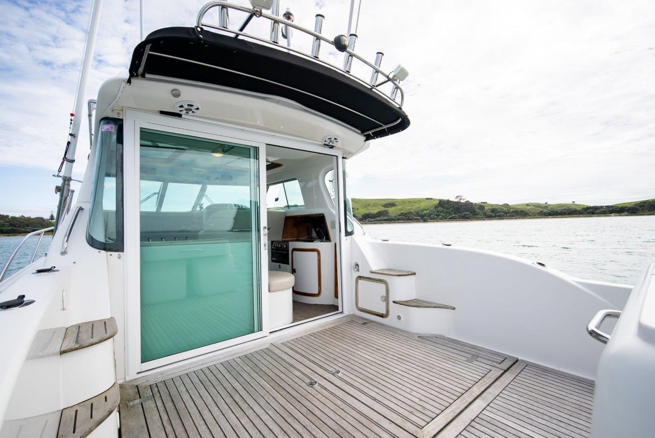 Experience the exceptional Rayglass 4000 Legend, a 12.5m fibreglass powerboat built in 2009, powered by twin 320hp Cummins Mercruiser QSD 4.2L sterndrive diesel engines with approximately 1660 hours. This well-maintained vessel offers a spacious 3-cabin layout, including double and single berths, perfect for comfortable cruising. Featuring a 1000L fuel capacity, side power bow thruster, Raymarine navigation systems, and a fully equipped galley with a 4-burner gas hob, fridge, and freezer. Additional highlights include teak cockpit decking, stainless steel swim platform, foldaway tender with a 2.5hp Yamaha outboard, and game fishing amenities such as live bait tank and rod racks. With a top speed of 30 knots and an easy 24+ knot cruise, this Rayglass 4000 Legend is a superbly presented turnkey boat ideal for both leisure and fishing adventures. Contact Tauranga Boat Sales for more information and viewing opportunities.