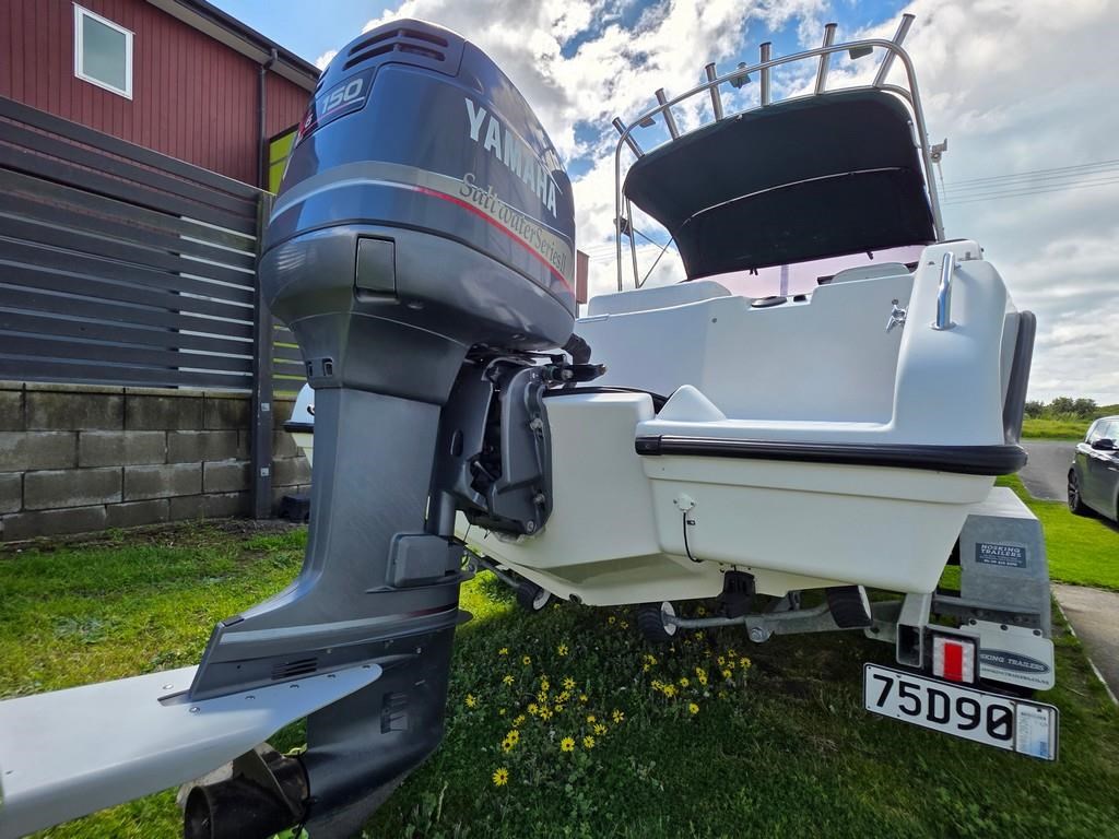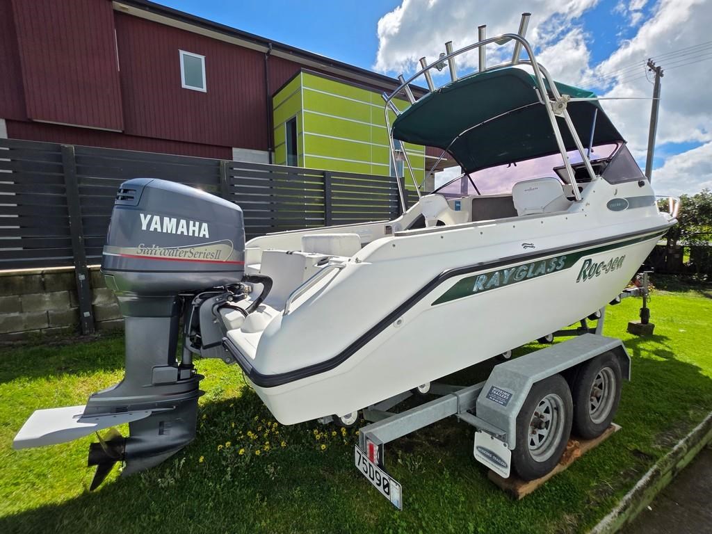 Discover the Rayglass 620 Legend, a well-maintained 6.2-metre fibreglass trailer boat from 2000, powered by a reliable Yamaha 150hp outboard engine with approximately 710 hours. This versatile vessel features a spacious V-berth cabin with infill cushions, an electric toilet, and a good bimini top for sun protection. Equipped with hydraulic steering, twin batteries with solar charging, and a Raymarine hybrid touch combo screen, it offers both comfort and advanced navigation. The boat comes with a 2020 Hosking dual axle multi-roller trailer with a braked front axle and electric winch, making transport effortless. Additional features include stainless steel rod racks and holders, teak combings, boarding ladder, and multiple anchors for secure mooring. Ideal for fishing and family outings, this Rayglass 620 Legend combines performance, convenience, and quality craftsmanship. Contact Tauranga Boat Sales to arrange a viewing and experience this respected brand firsthand.