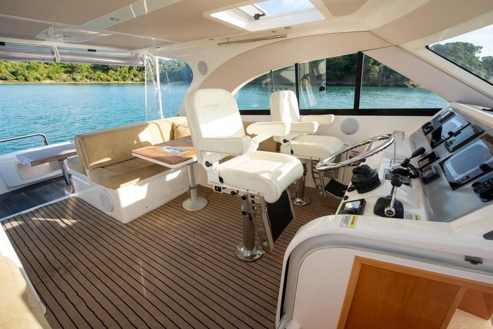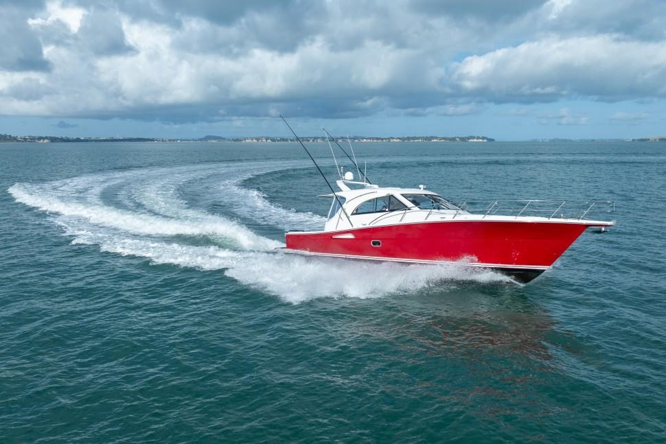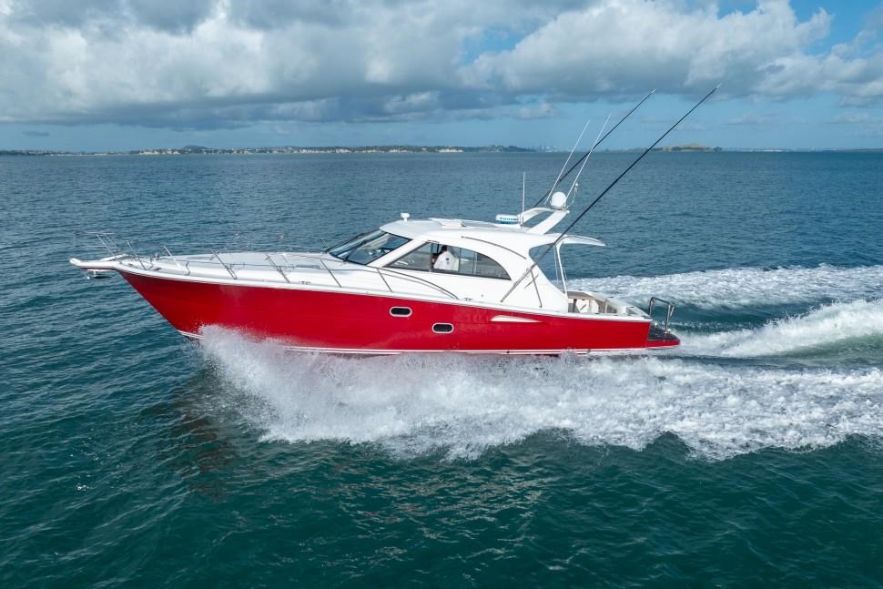 The Riviera 43 Offshore Express is a premier offshore powerboat designed for both performance and luxury. Measuring approximately 13.11 metres in length with a 4.72 m beam, this fibreglass vessel offers exceptional stability and confidence in bluewater conditions thanks to its deep-V hull design. Powered by twin zero-hour Volvo IPS Gen 2 435 hp drives, it delivers smooth, reliable joystick-controlled power, making it ideal for offshore fishing, coastal cruising, or weekend family adventures. The boat features a full Furuno electronics suite including radar and fishfinder, a modern galley, watermaker, air-conditioned saloon, and comfortable sleeping accommodations for five across two cabins and the salon. Professionally maintained and turnkey ready, this Riviera 43 Offshore Express blends muscle, comfort, and style, perfect for those seeking a refined Kiwi boating experience on the Gulf or beyond.