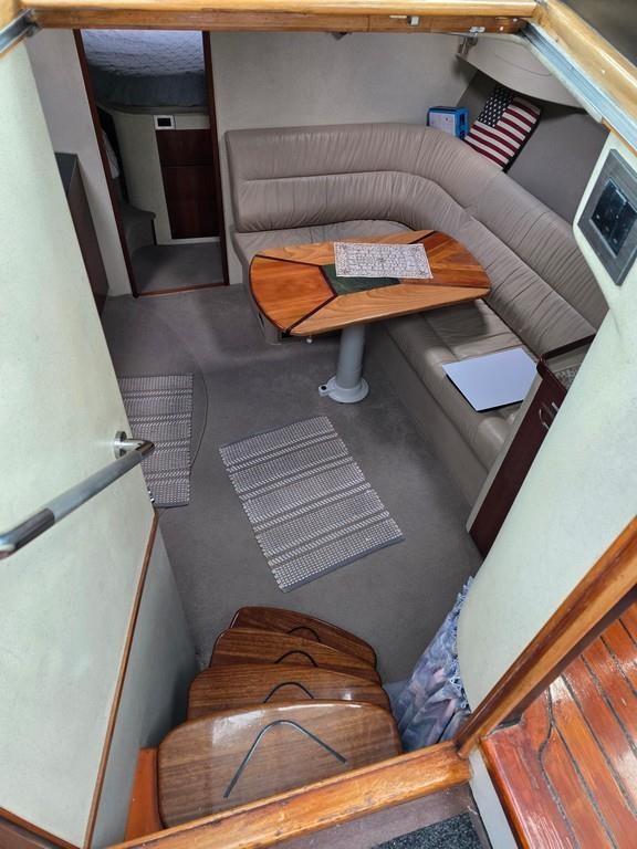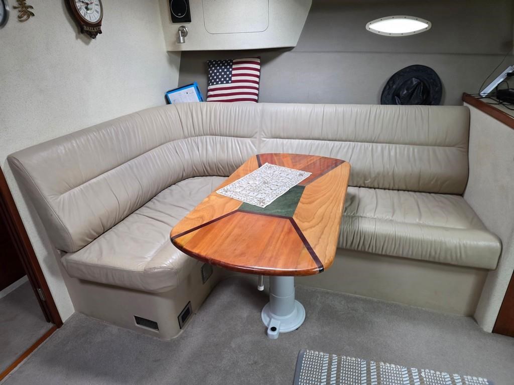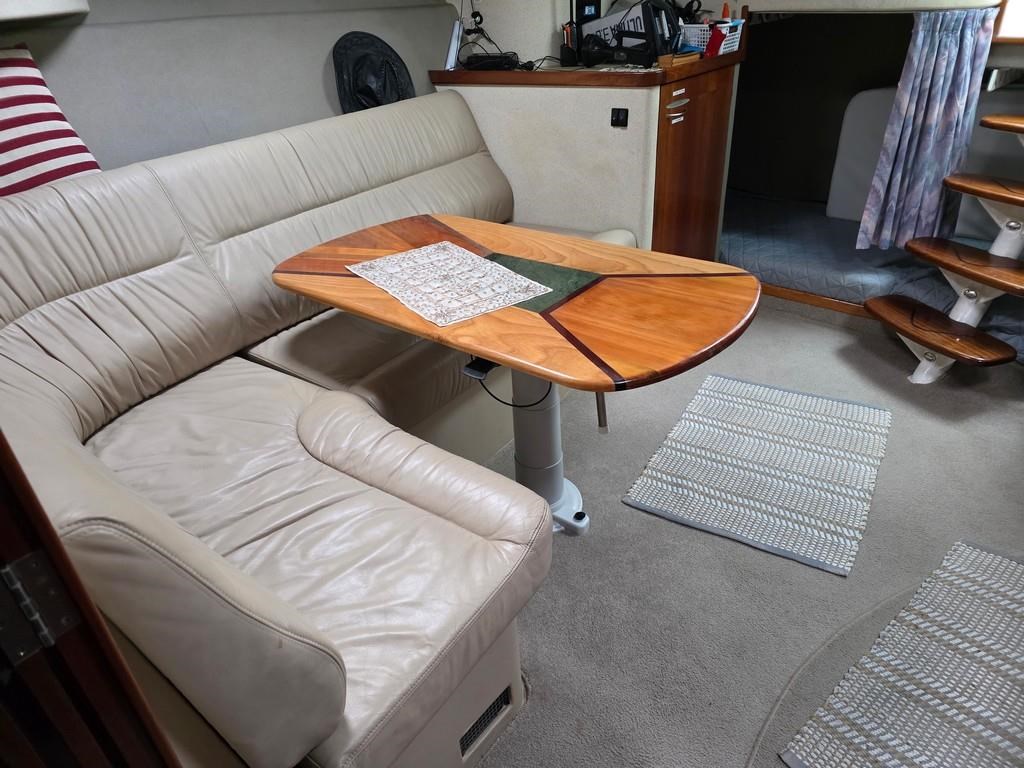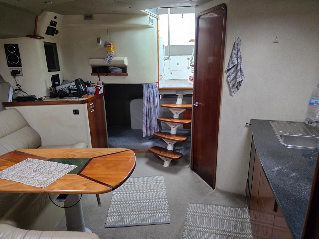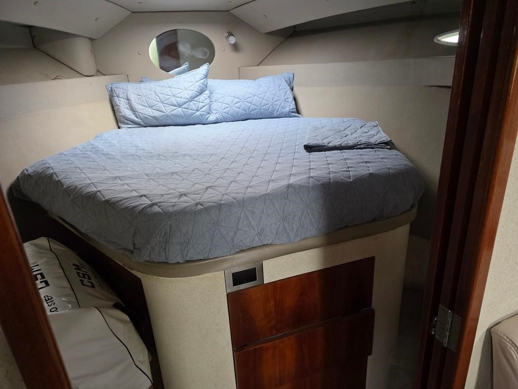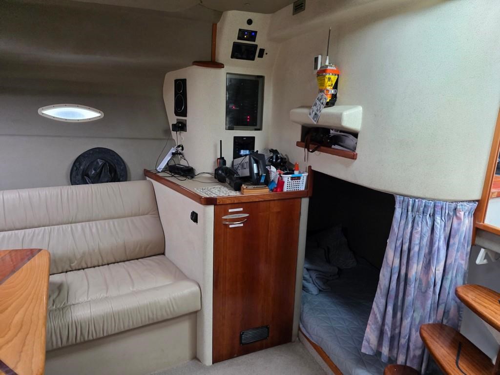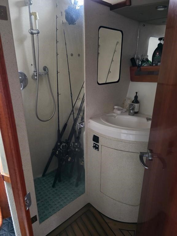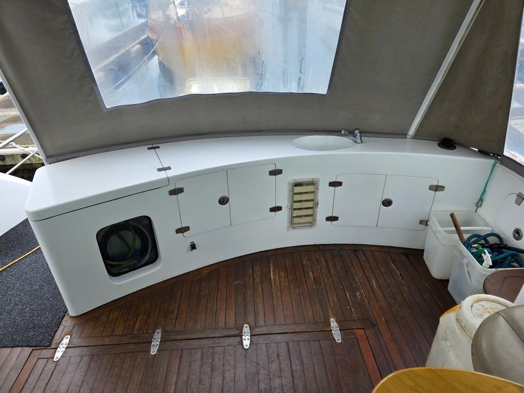 The Fortron 40 Sedan (2004) is a robust and well-designed power boat featuring a fibreglass hull, built for both comfort and performance. Powered by twin Caterpillar 3116 diesel engines delivering 275hp each, this vessel offers a reliable twin shaft drive system with approximately 7800 engine hours. It cruises comfortably at 12 knots with a top speed of 23 knots. The spacious layout includes a swim platform with stainless steel railing and bait board, aft couching, cockpit covers, and a well-equipped galley with modern appliances such as a wine cooler, fridge, microwave, and 2-burner hob. The helm station is advanced with joystick steering, bow and stern thrusters, trim tabs, autopilot, and a 12" Simrad display with radar and electronic capstan. Accommodation features a lock-up cabin with an island bed, a single aft saloon bed, and a lock-up shower/toilet, making it ideal for extended cruising. This New Zealand-built fibreglass sedan combines practical amenities with strong performance, perfect for boating enthusiasts seeking a versatile and comfortable power cruiser.