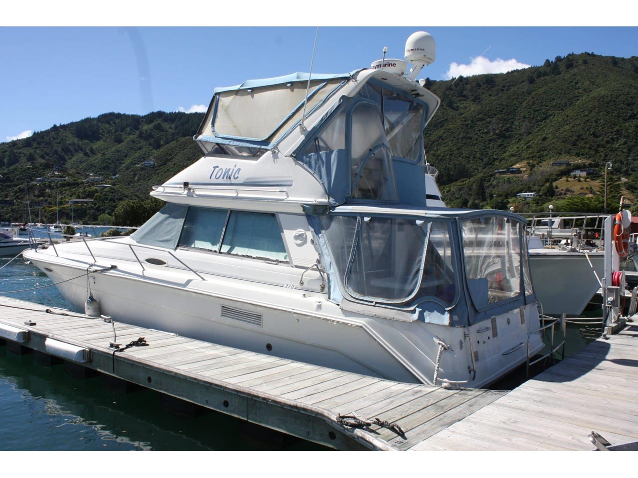 "Tonic" is a 370 Flybridge launch from the ever-popular Sea Ray stable of boats, roomy with two cabins and large saloon with single berth, lower-level galley with shower and toilet. Compass, Sounder, Radar, Autopilot, Life Jackets, Flares, Bilge pump, 2 x VHF Radio's, Compass, Sounder, Radar, Autopilot.