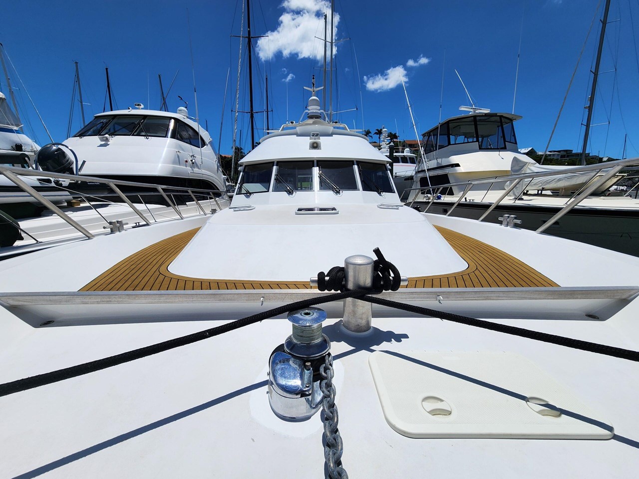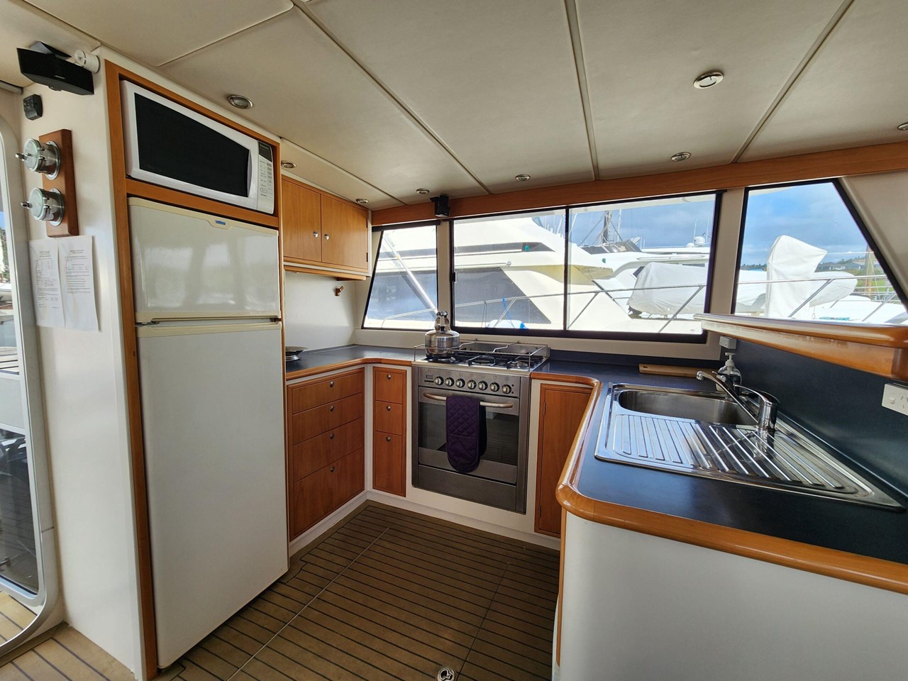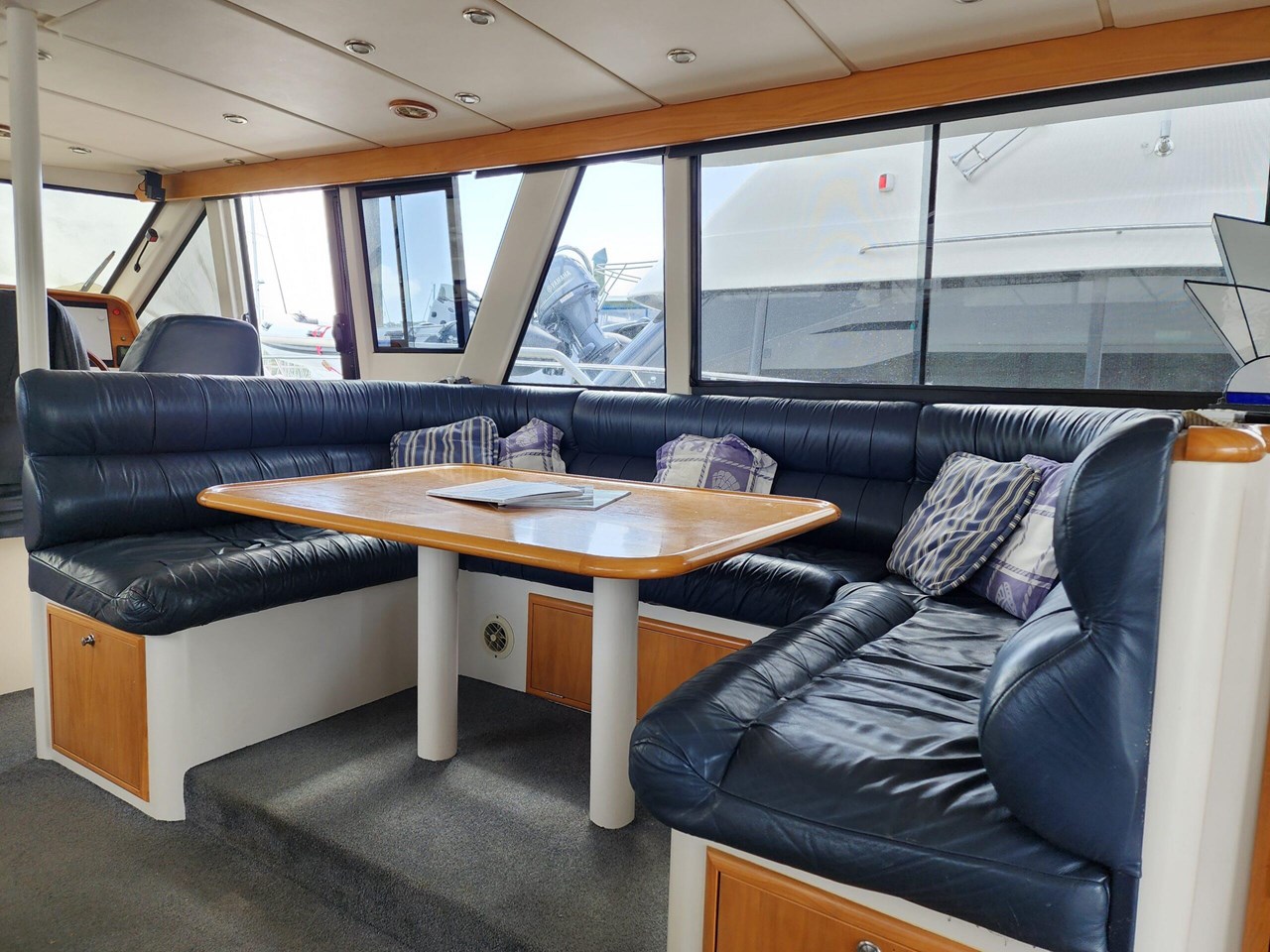 Accommodation on board includes three separate cabins, and the saloon can also be utilized with a fold out double berth. A large U-shaped galley will provide excellent facilities when cooking, along with a barbeque on the aft deck. Two heads onboard, one next to the three cabins with a separate shower room opposite, and a wet head on the aft deck, there is even a cockpit shower in case you just want a quick rinse off.
