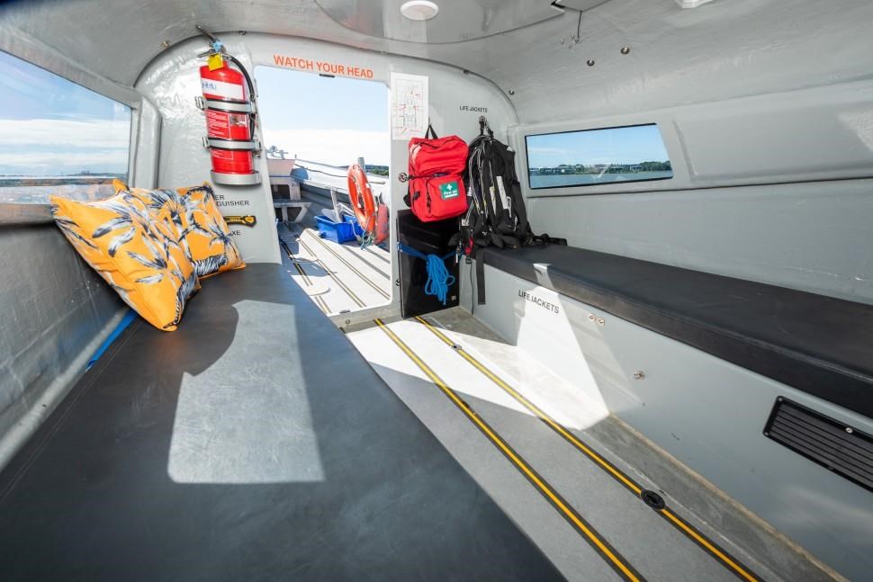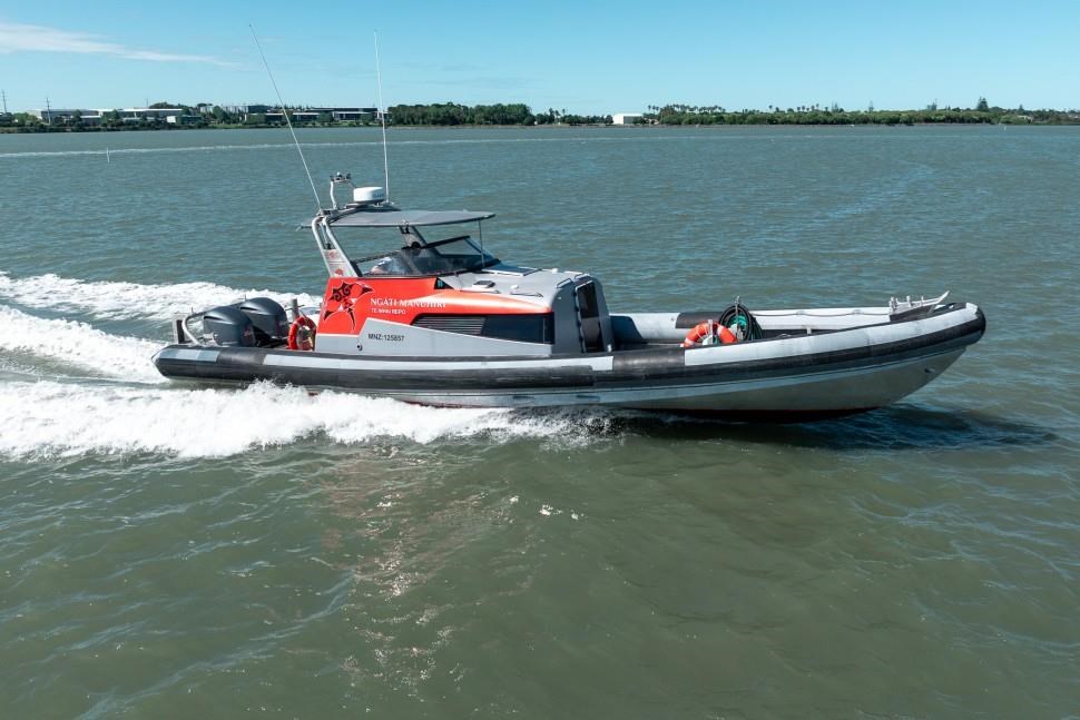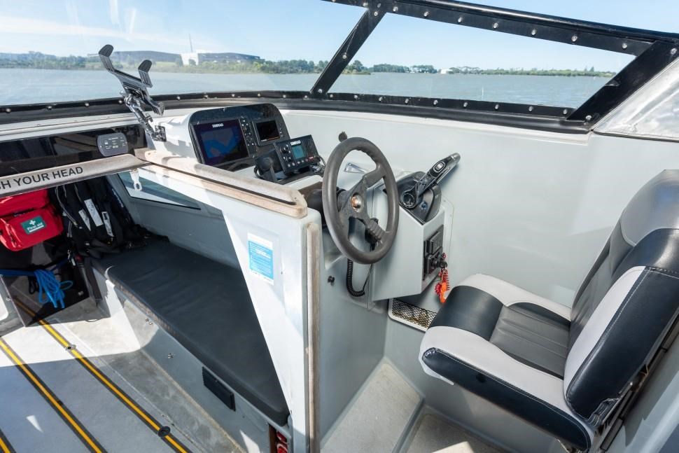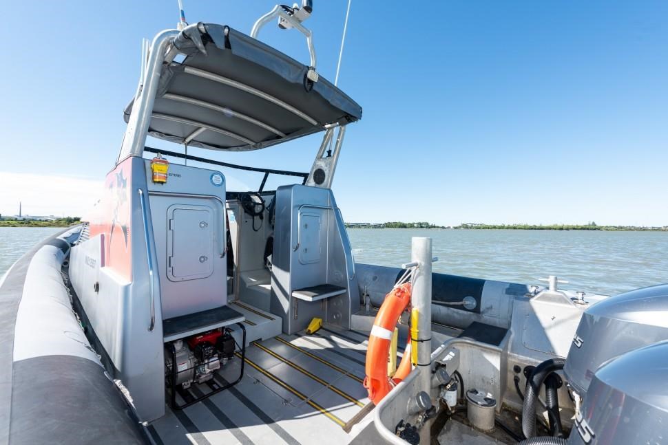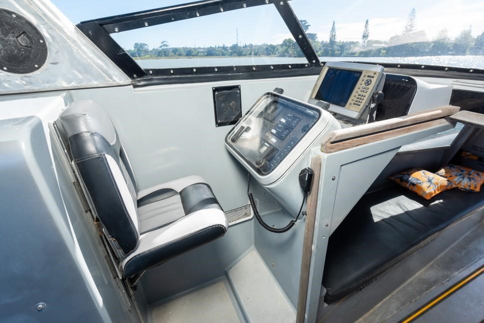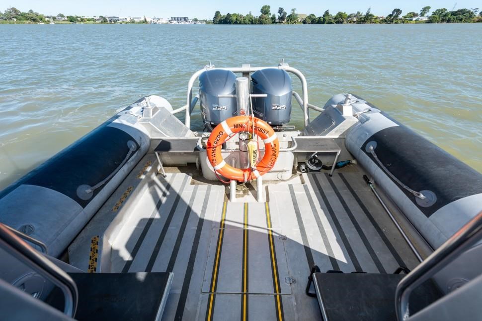 The 1998 Sensation Boats Interceptor 11.85m is a high-performance rigid inflatable boat (RIB) designed for versatility and reliability. Powered by twin 225hp Yamaha outboard engines, it achieves speeds up to 45 knots, making it ideal for commercial use, coastal cruising, offshore adventures, and patrol duties. Originally used as a chase boat during the America's Cup and as an ex-police vessel, this RIB offers proven durability and excellent handling in demanding marine environments. Certified for 10 passengers and 2 crew under MNZ survey until 2027, it suits both private and commercial applications. The open cockpit features ample seating, storage, modern navigation equipment, and a bimini for sun protection, while the cabin provides comfortable bench seating. Built with Sensation Boats' renowned quality, this rugged and reliable vessel ensures years of dependable performance for a variety of marine activities.