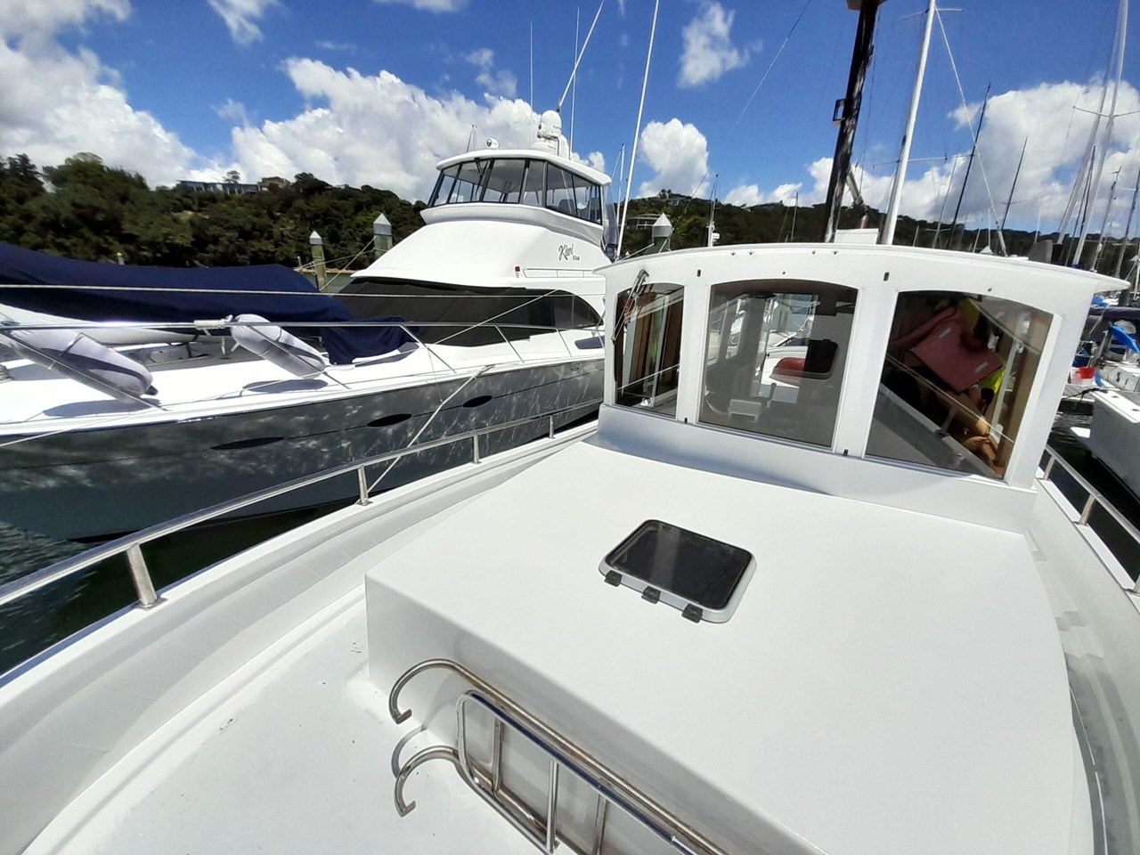 The saloon and galley are light, spacious and comfortable. The dining arrangement can be re-configured to a double bed and there is also a large and private master cabin. There is a large separate head with a flush toilet and shower. The stern area is expansive with full walk-around capability. This makes for great fishing, outdoor living and entertainment.